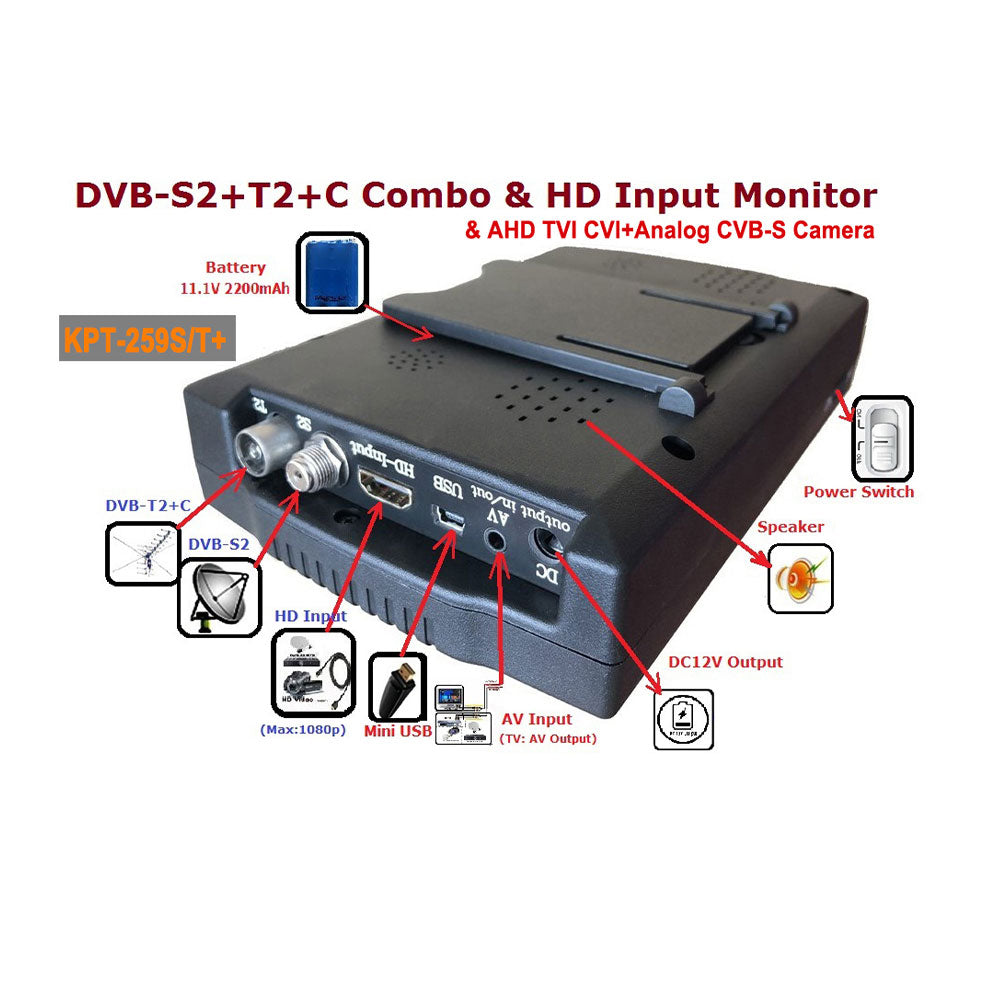 - 4.3 Inch IPS (800*480HD) High definition TFT LCD Screen which Can Display Channels (DVB-S/S2+T/T2+C ) < Support DVB-S/S2 MP4 Hevc(H.265) AVS/AVS+>