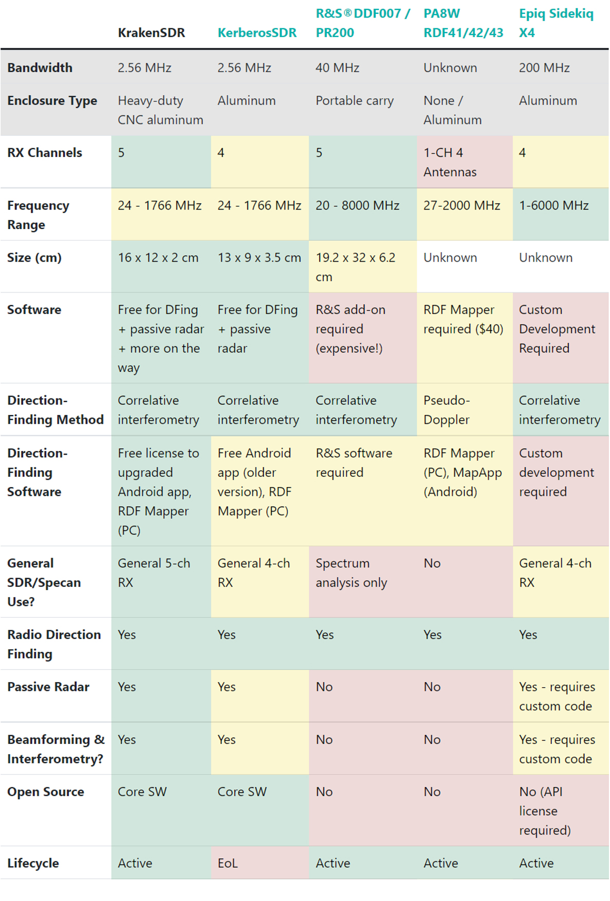 The previous version of KrakenSDR was known as KerberosSDR, which we successfully crowdfunded on Indiegogo. All backers of KerberosSDR received their orders and the relevant source code for direction finding and passive radar. KrakenSDR improves upon KerberosSDR in several important respects: