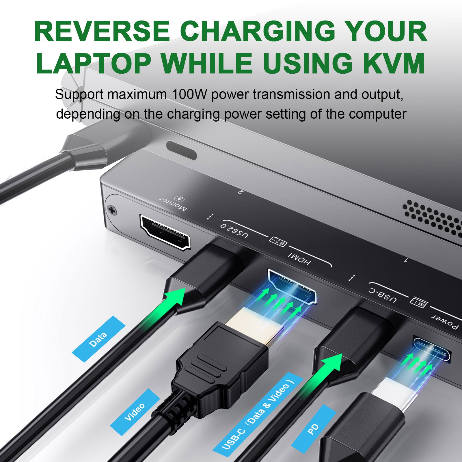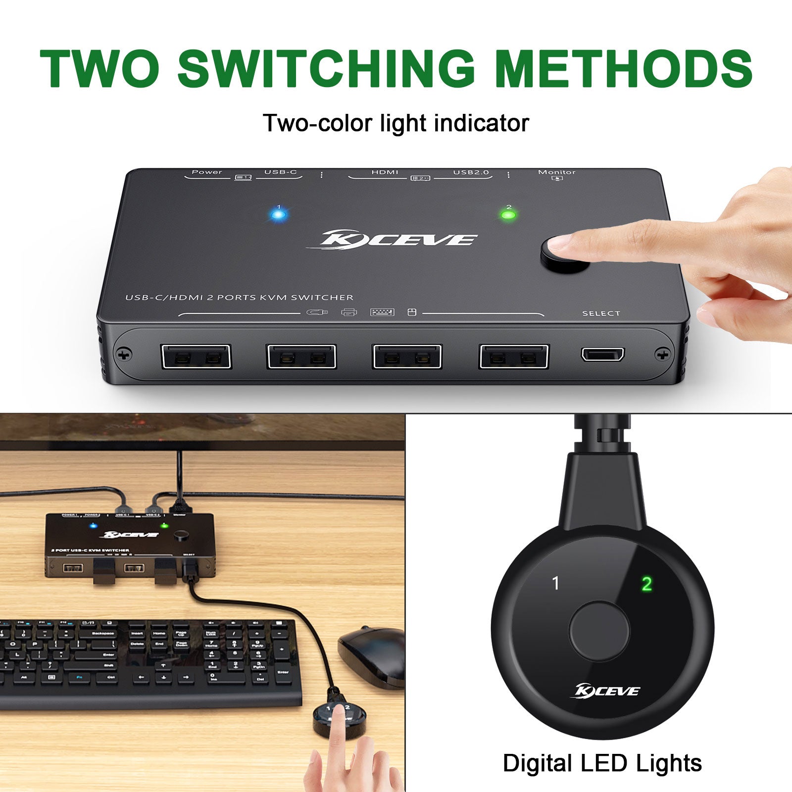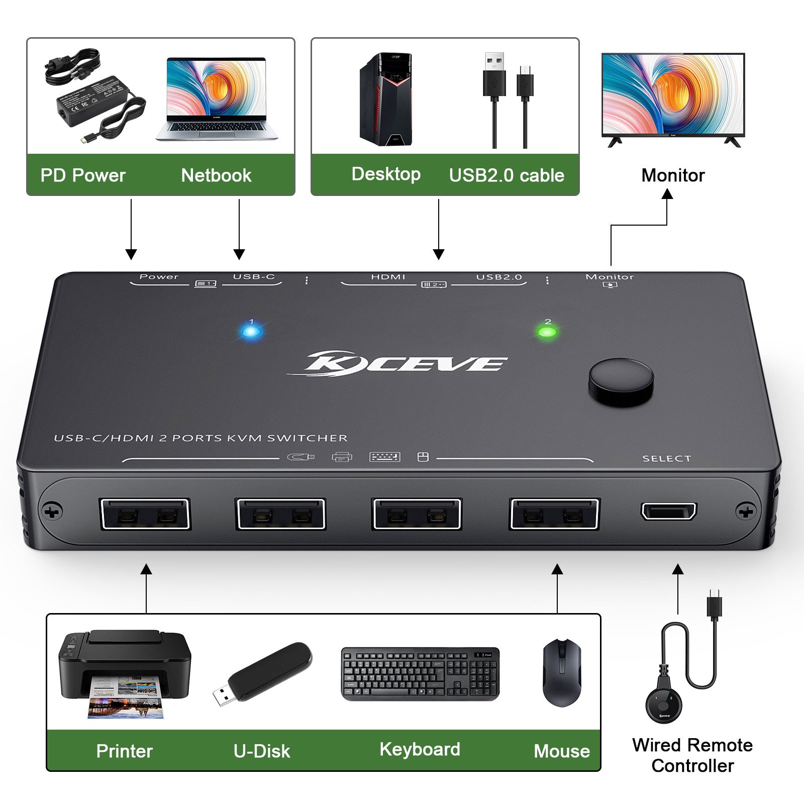 KVM201TC 4K USB-C/HDMI 2 Port KVM Switch HDMI KVM Switch for U Disk Keyboard Monitor Mouse Printer