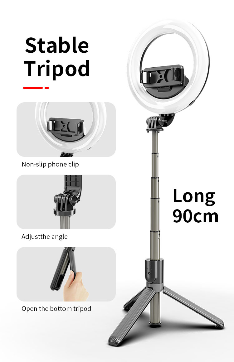 L07 Ring Fill Light Selfie Stick Tripod with Phone Clamp Horizontal Vertical Photography Vlog