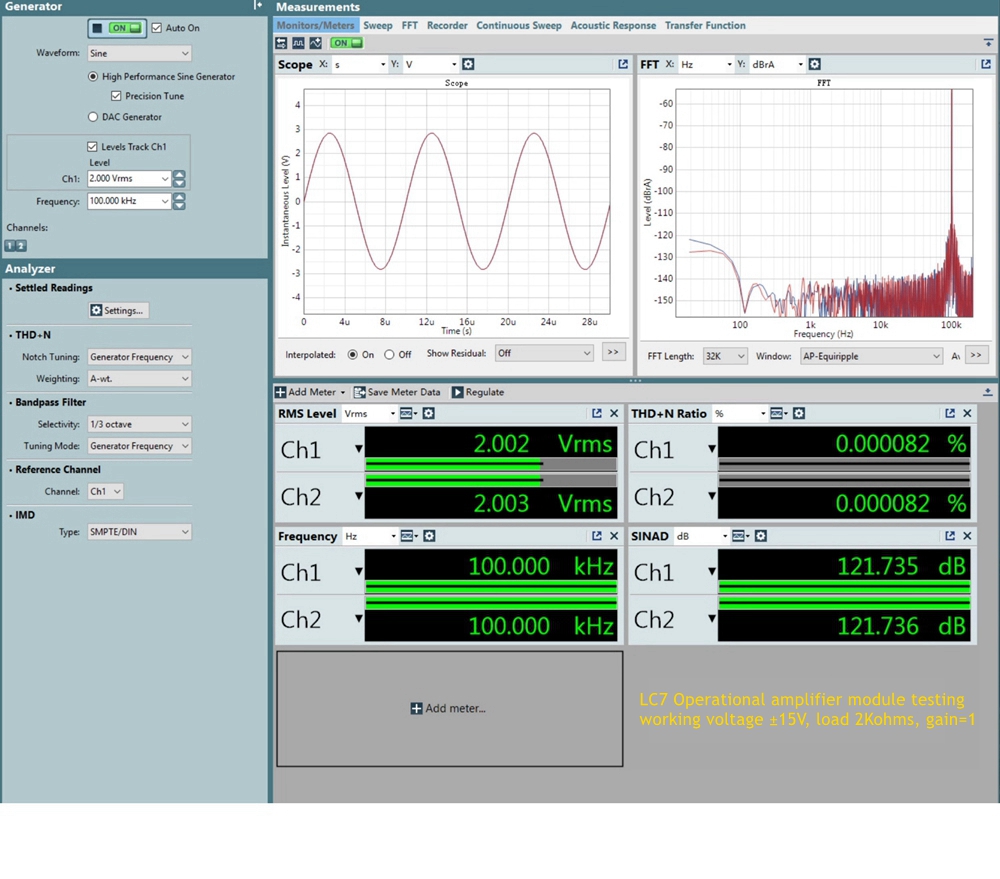 - Mega-ohm level high impedance input enhances the ability to amplify and acquisite weak signals without losing details, while maintaining low noise and distortion. The measured THD+N is 0.00003% at 1KHz (instrument distortion+noise of 0.00006%).