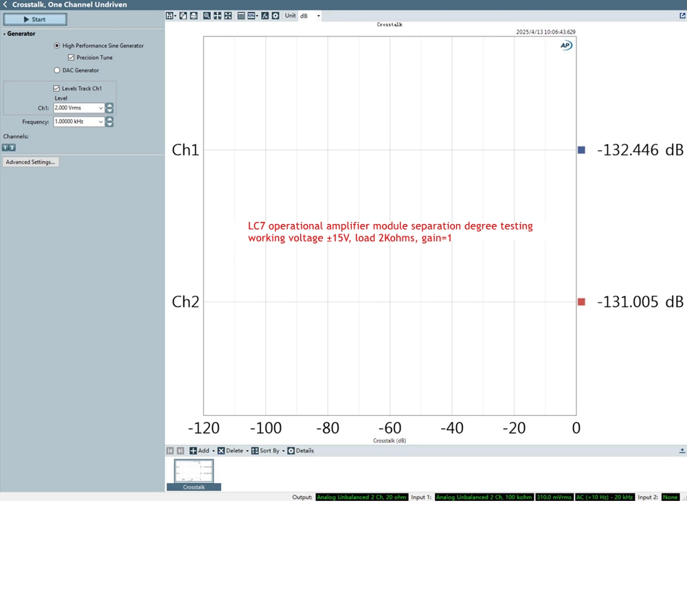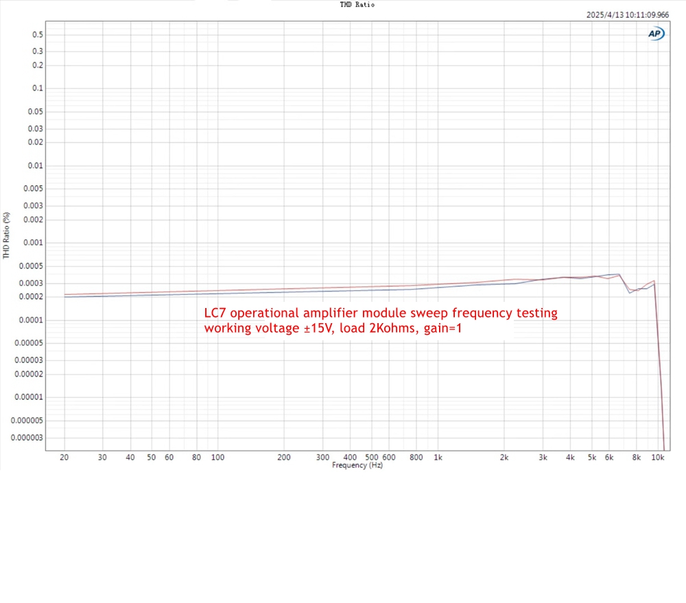 - High output current. When the output current is 100mA, the distortion is less than 0.002%, which is 10 times lower than previous modules. However, ordinary operational amplifiers have already burned out or protected against this current output.