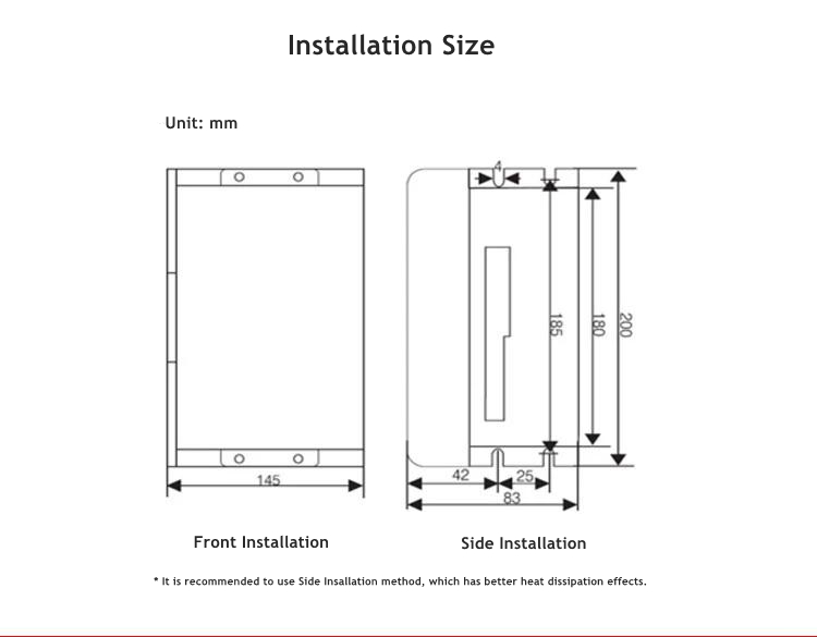 - DIR+: Direction input signal: For high/low level signals, to ensure reliable commutation of the motor, the direction signal should be established at least 5μs times ahead of the pulse signal. The initial running direction of the motor is related to the wiring of the motor winding. Swapping any phase winding (such as A+, A- exchange) can change the initial running direction of the motor. When using +12V or +24V, a resistor needs to be connected in series.