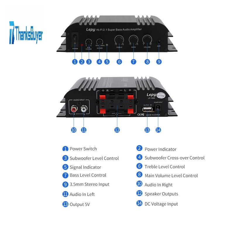 LEPY LP-168S Super Bass 2.1 Channel Power Amplifier Audio Hifi Power Amp Output 40W*2 + 45W*1