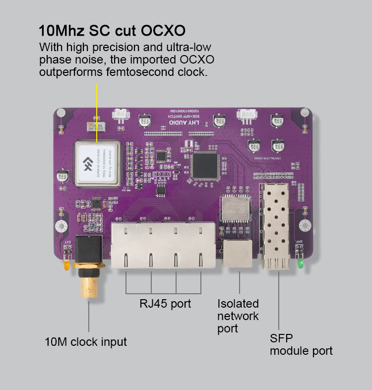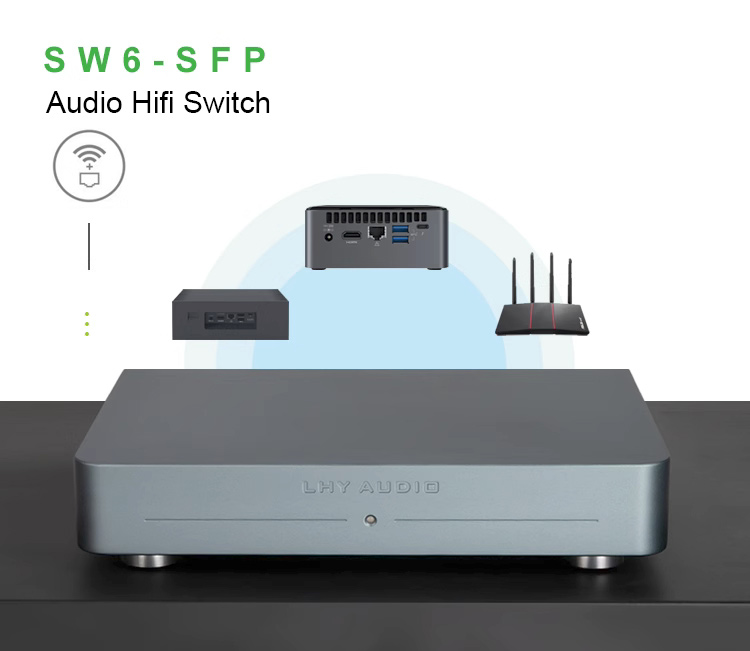 LHY Audio SW6-SFP 6-Port Hifi Audio Ethernet Switch Network Switch DC Powered with SC-Cut OCXO