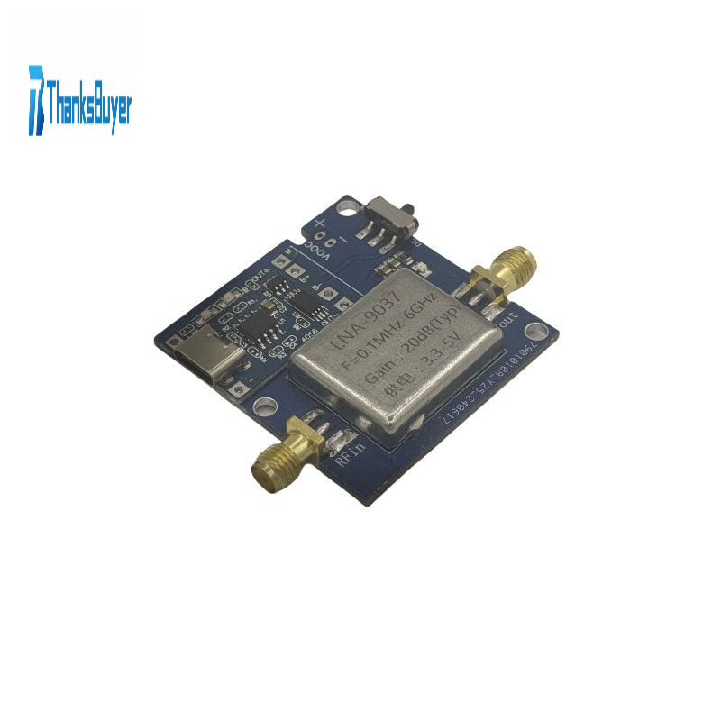 The LNA amplifier uses a highly linear, ultra-low noise 9037 chip. The LNA module is designed for SDR MW, SW, radio FM and other frequency bands.