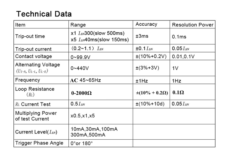 - It can measure Trip-Out Current, trip-out time, Contact Voltage, loop resistance
