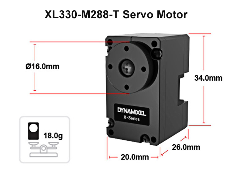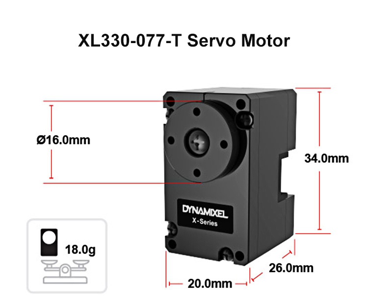 In terms of hardware configuration, the robotic arm is equipped with high-performance servo motors. With excellent torque and stability, Dynamixel XL430 series motor ensures the reliability and precision of the robot arm when it is performing high-intensity tasks. Dynamixel XL330 series motor improves the overall performance of the robot arm thanks to its lightweight and agile movements. In addition, the lightweight design further enhances the responsiveness and dynamic adaptability of the robotic arm, allowing it to excel in rapid movement and precise positioning.