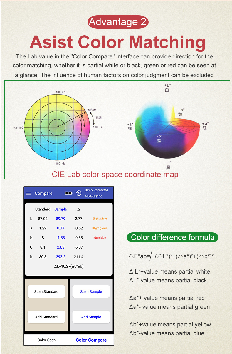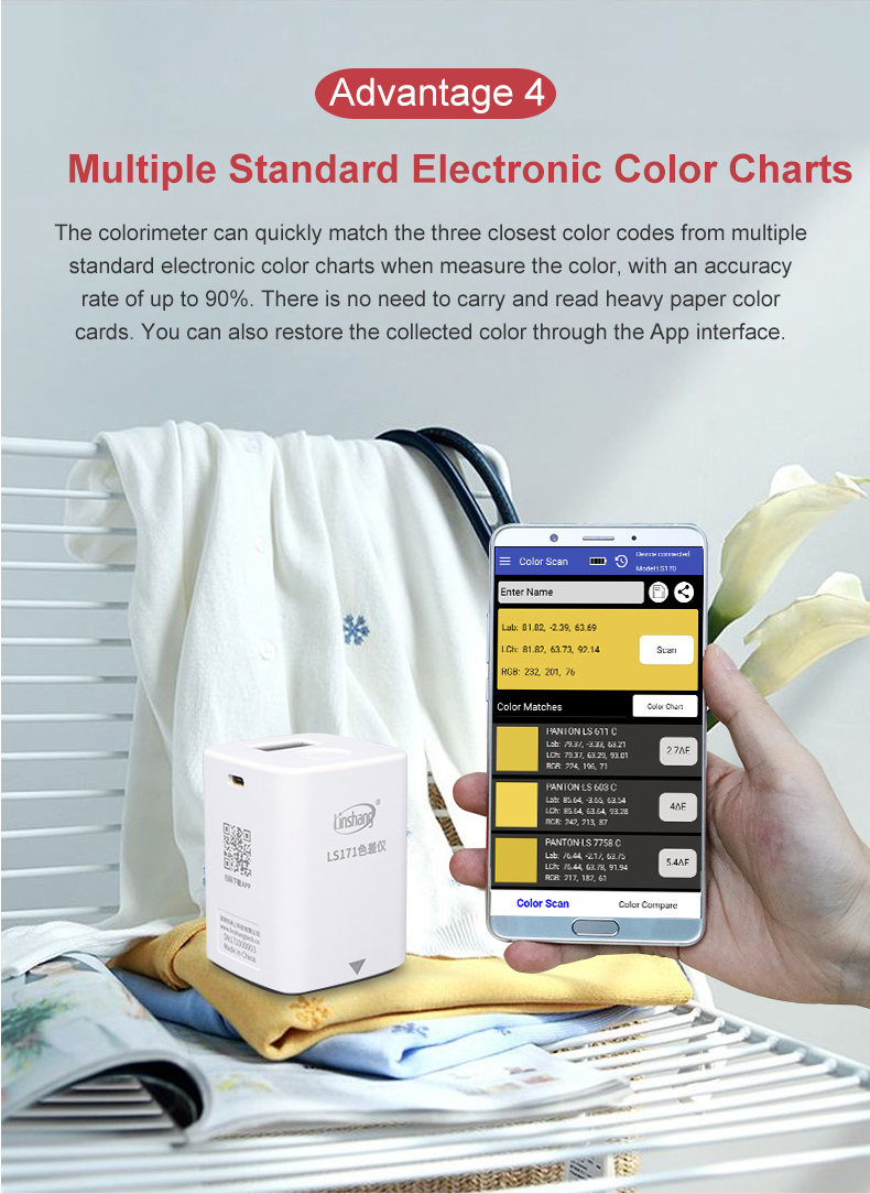 LS171 Portable Colorimeter w/ Cellphone APP For Printing Coating Ceramics Textiles Color Difference
