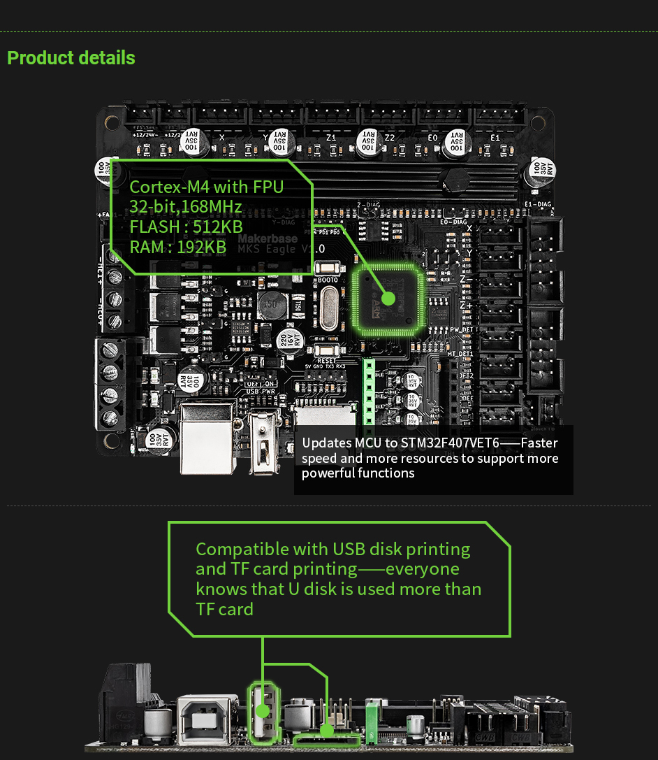 Makerbase 3D Printer Motherboard 3D Printer Main Board (MKS Eagle) Replacement for Robin Nano V3