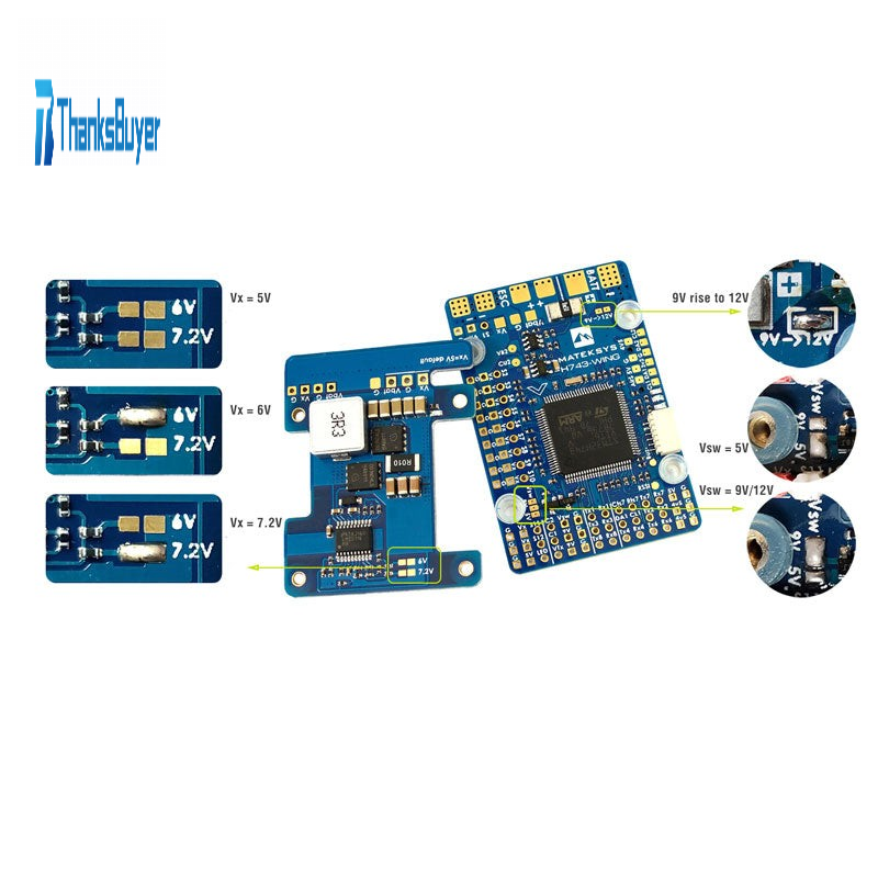 - Voltage adjustable, 5V Default, 6V or 7.2V via jumper