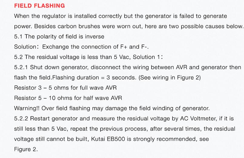 Build Up Voltage: residual volts at AVR terminal >5V AC