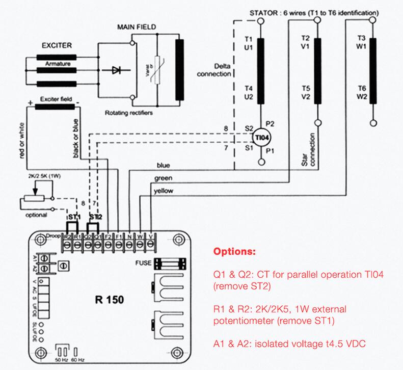Voltage: 240VAC±10% for 1 phase, 380V up to 480VAC±10 % for 3phase, 2 line sensing AVR true average of the line to line waveform. Use resistor (SMD) network for trouble free sensing control of sensed voltage I regulation