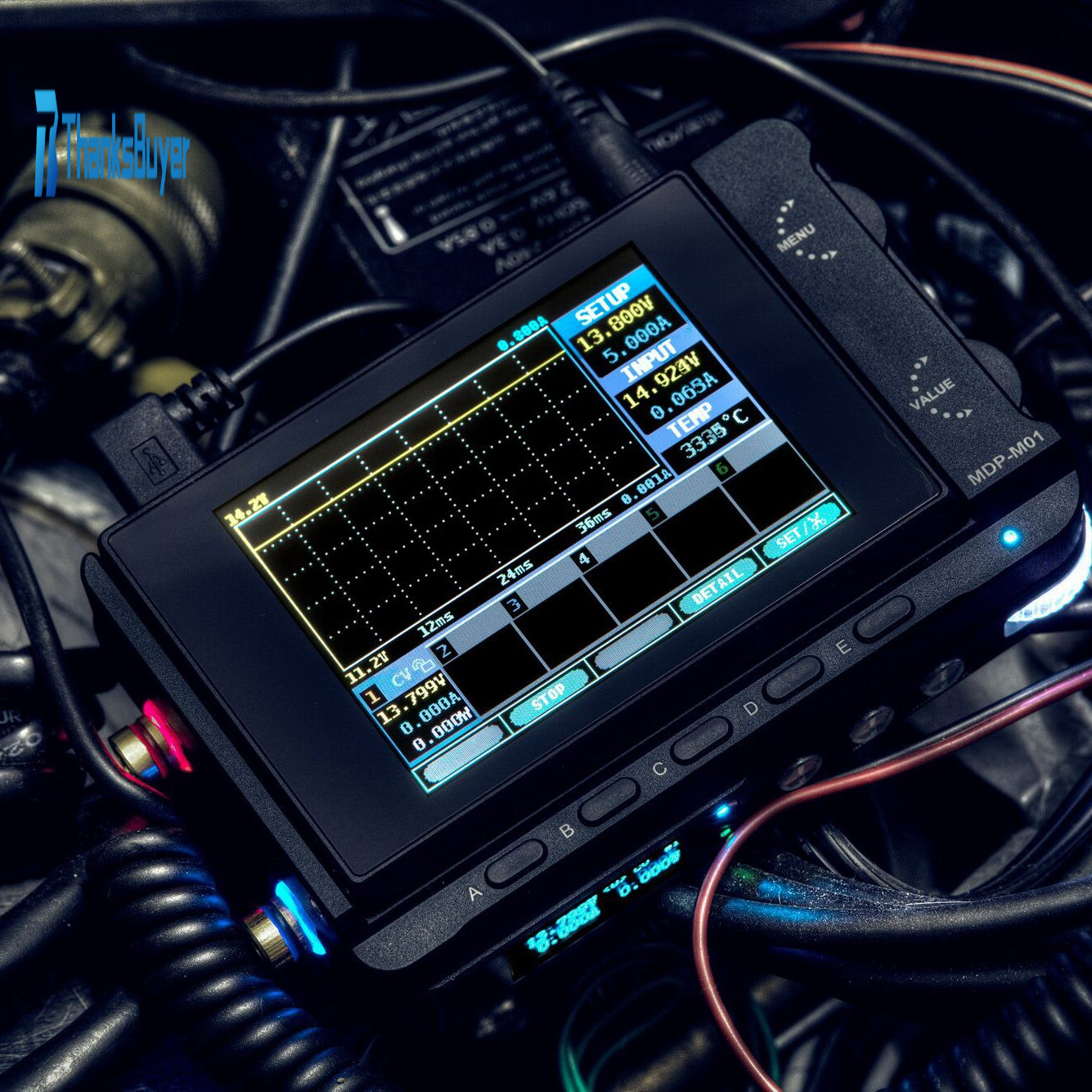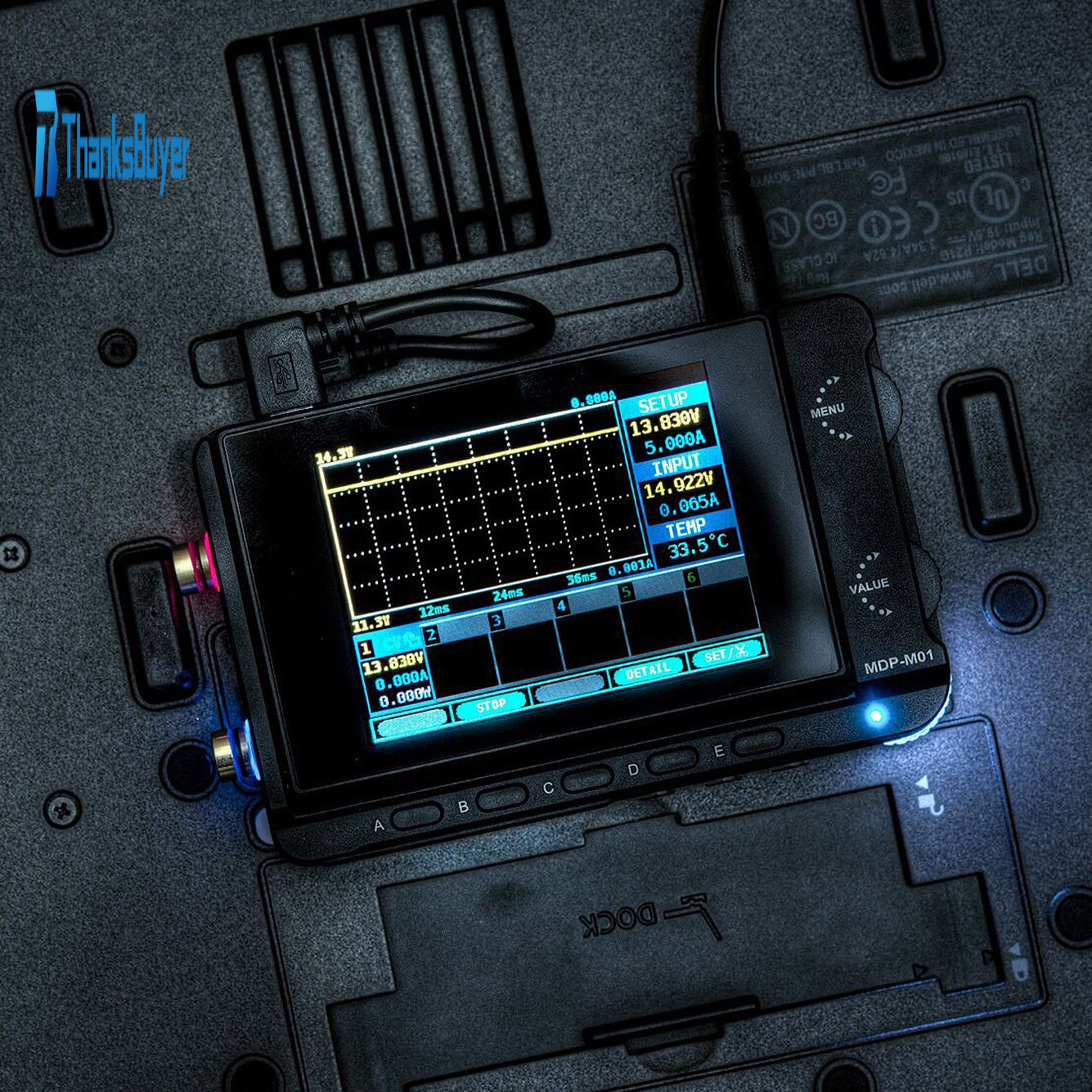 MDP-M01 Display Control Module: Equipped with a 2.8-inch TFT screen, it can display the voltage-current waveform in real time, support data statistics, and automatically pair with and control six sub-modules (digital power modules), with dual thumb wheels and 90-degree scrolling user-friendly design.