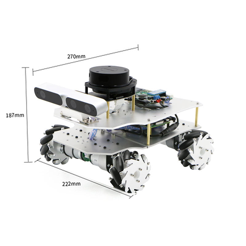 The mecanum wheel car uses metal wheels, and its accuracy and life are higher than that of general plastic mecanum wheels, which is especially suitable for ROS cars. Chassis is equipped with pendulum suspension system
