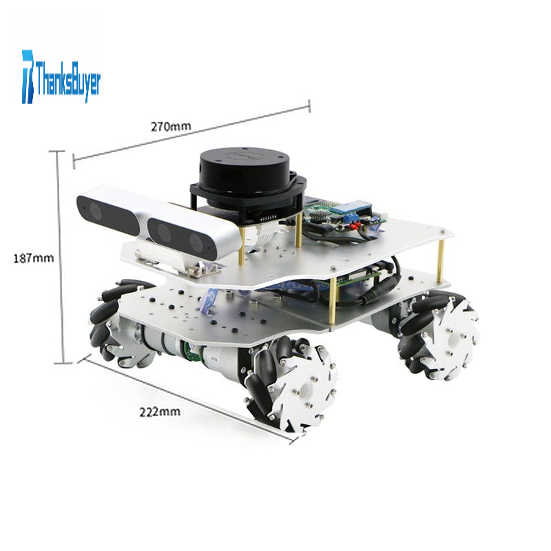 The mecanum wheel car uses metal wheels, and its accuracy and life are higher than that of general plastic mecanum wheels, which is especially suitable for ROS cars. Chassis is equipped with pendulum suspension system