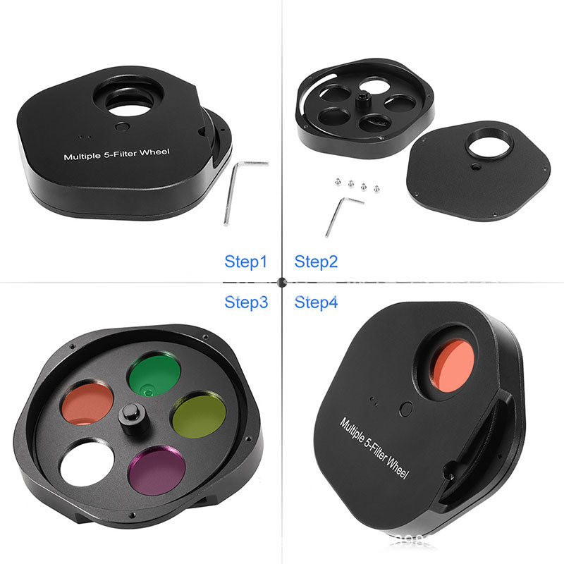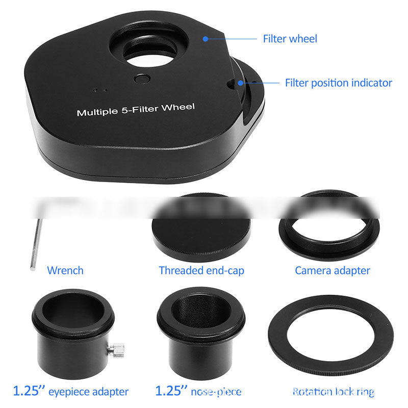 Metal 1.25-inch Manual Filter Wheel Multiple 5-Filter Wheel High Quality Accessory for Astronomical Telescope