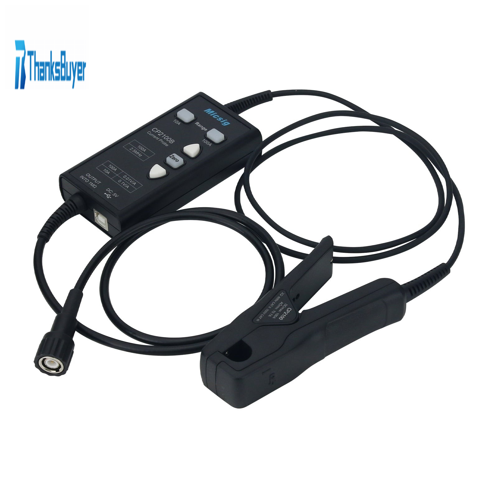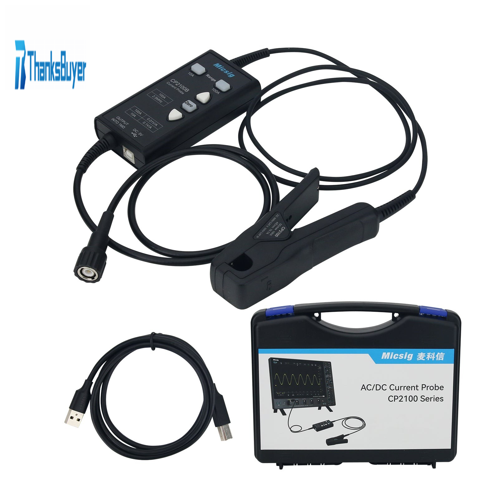 Micsig CP2100B 2.5MHz 10A/100A AC DC Current Probe USB Powered for Oscilloscopes with BNC Interface