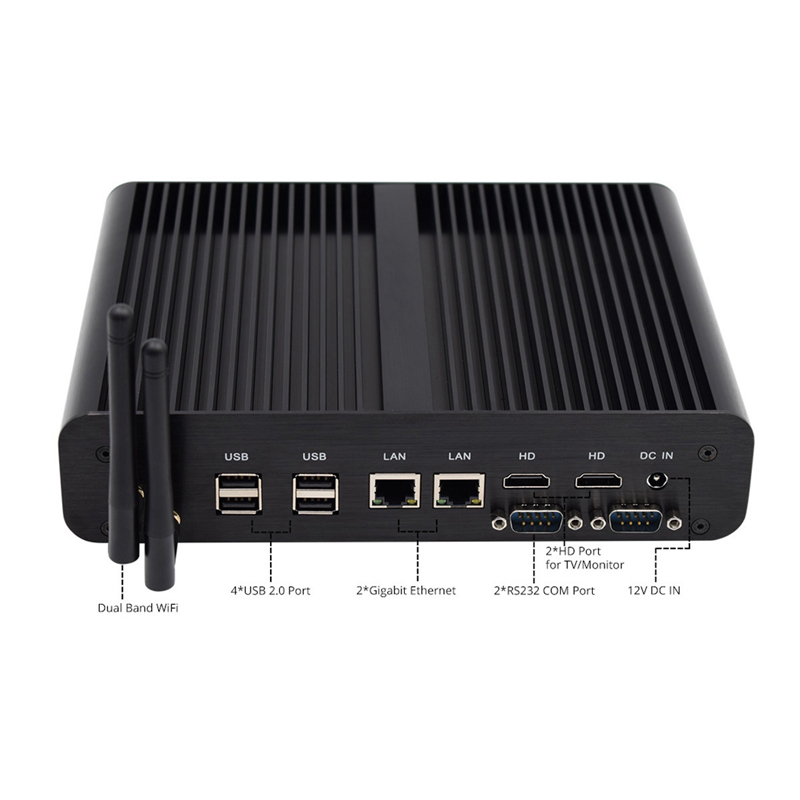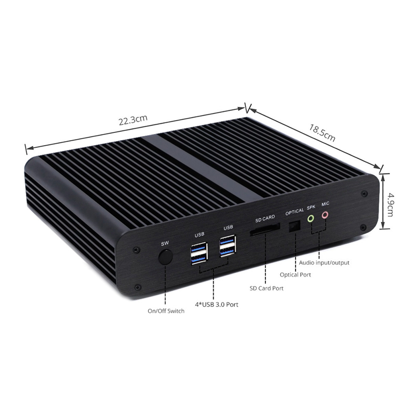 - Fanless design. Durable aluminum alloy shell dust-proof, shock absorption design.