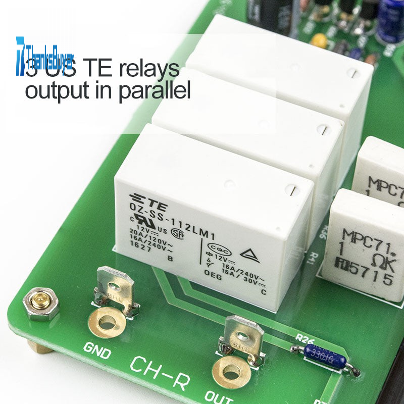 5. There is a complete protection circuit, with over-current, output short-circuit and DC protection functions, using original American TE Tyco high-quality relays. Using 3 high-current relays per channel can better over-current, but also effectively extend the life of the relay.