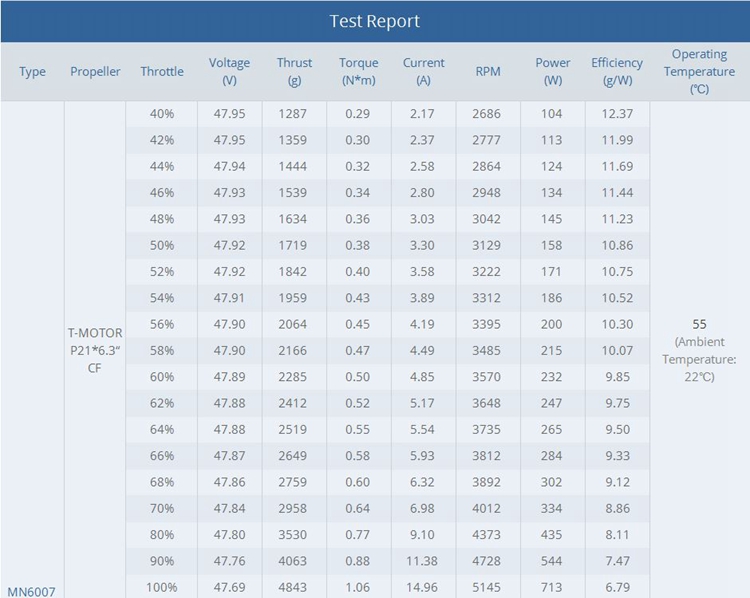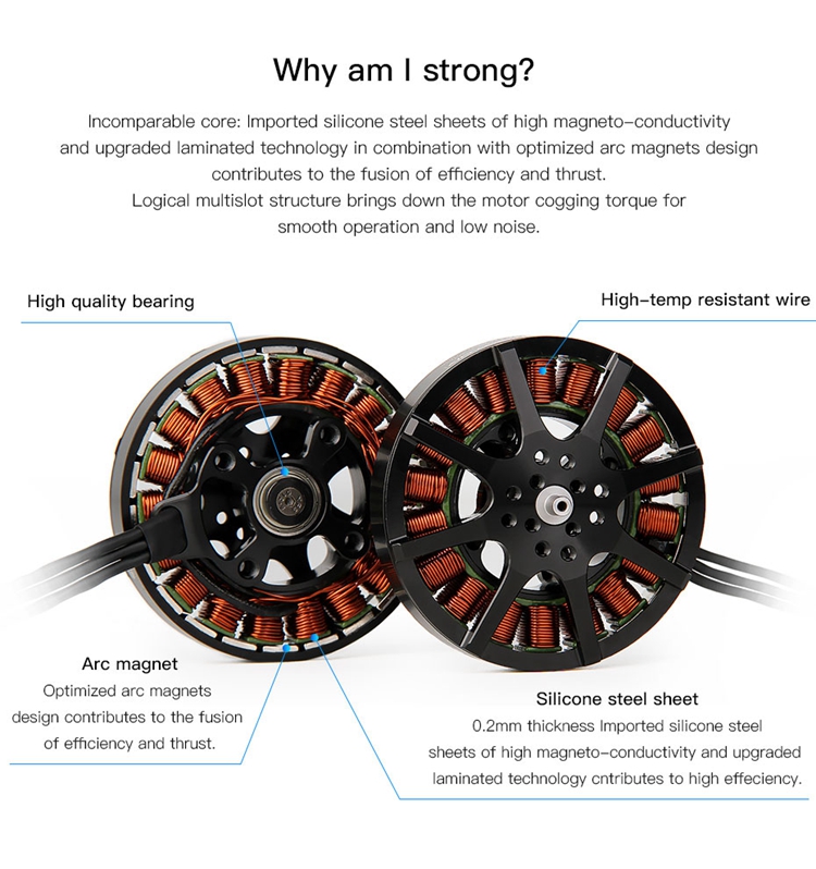 MN6007 160KV Brushless Motor Max. Thrust 5.5kg for Super Light Drone Perfect Match 21-22 Inch Prop