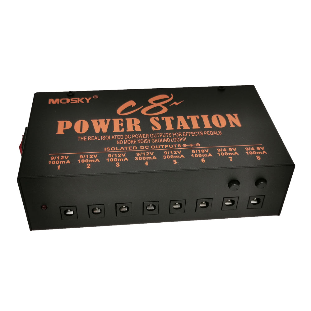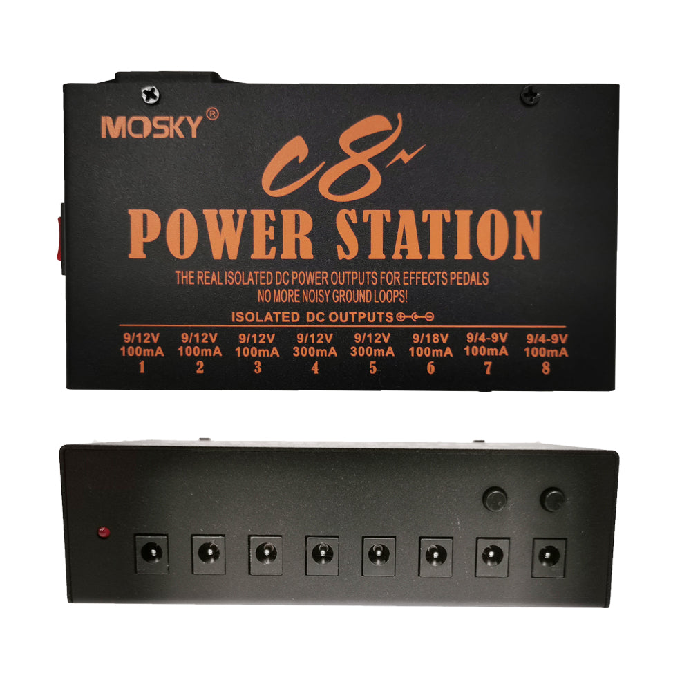 MOSKY C8 Guitar Effect Pedal Power Supply 8 Isolated Output 4-9V Adjustable 12V 18V Optional Voltage Guitar Pedal Power Station