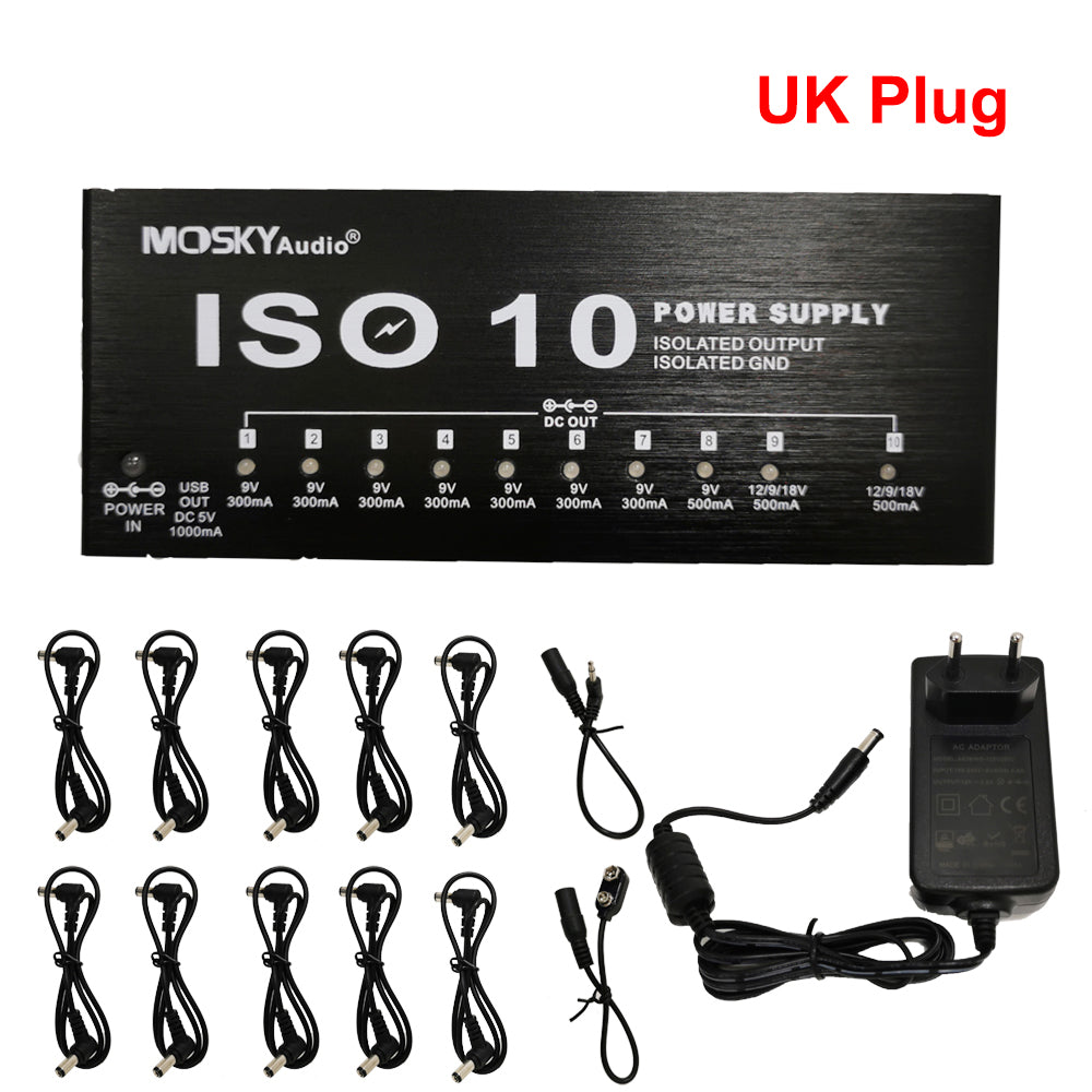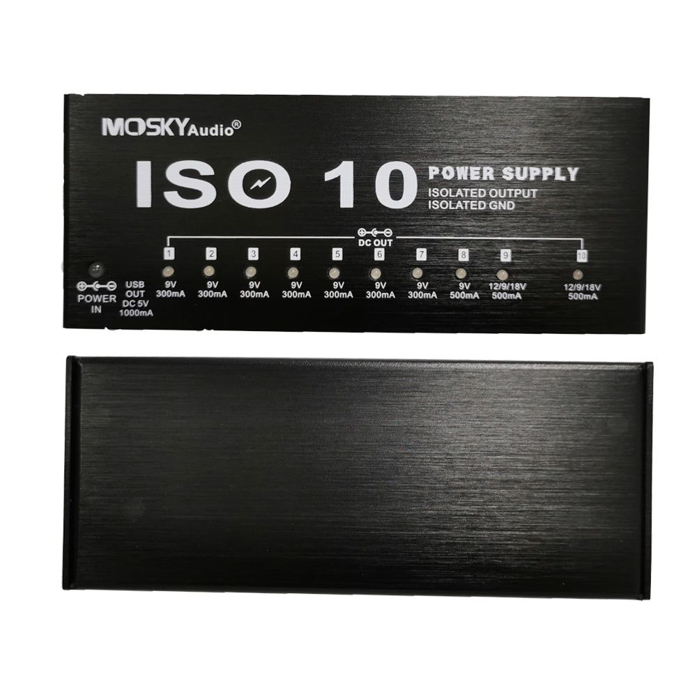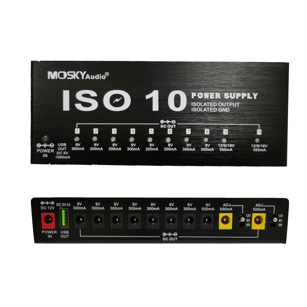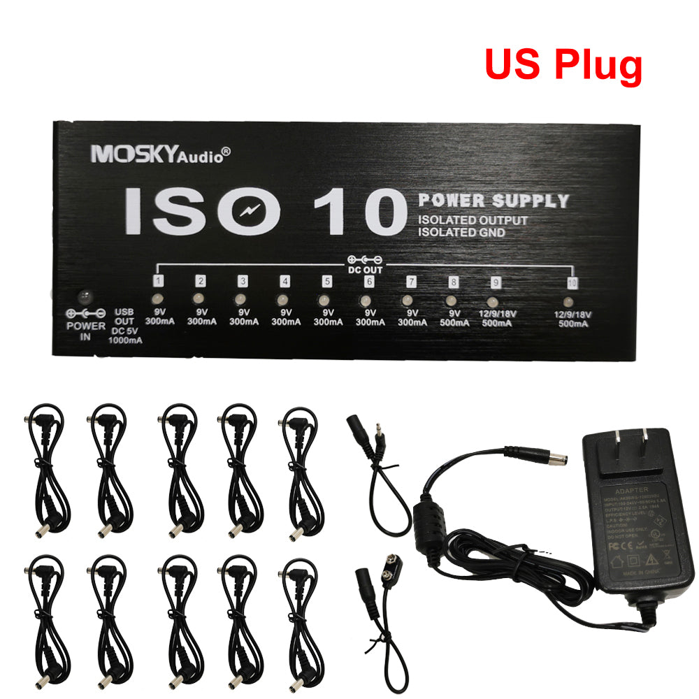 MOSKY ISO-10 Guitar Effect Pedal Power Supply 10 Isolated DC Outputs/ 5V USB Output for 9V 12V 18V Protection Guitar Accessories