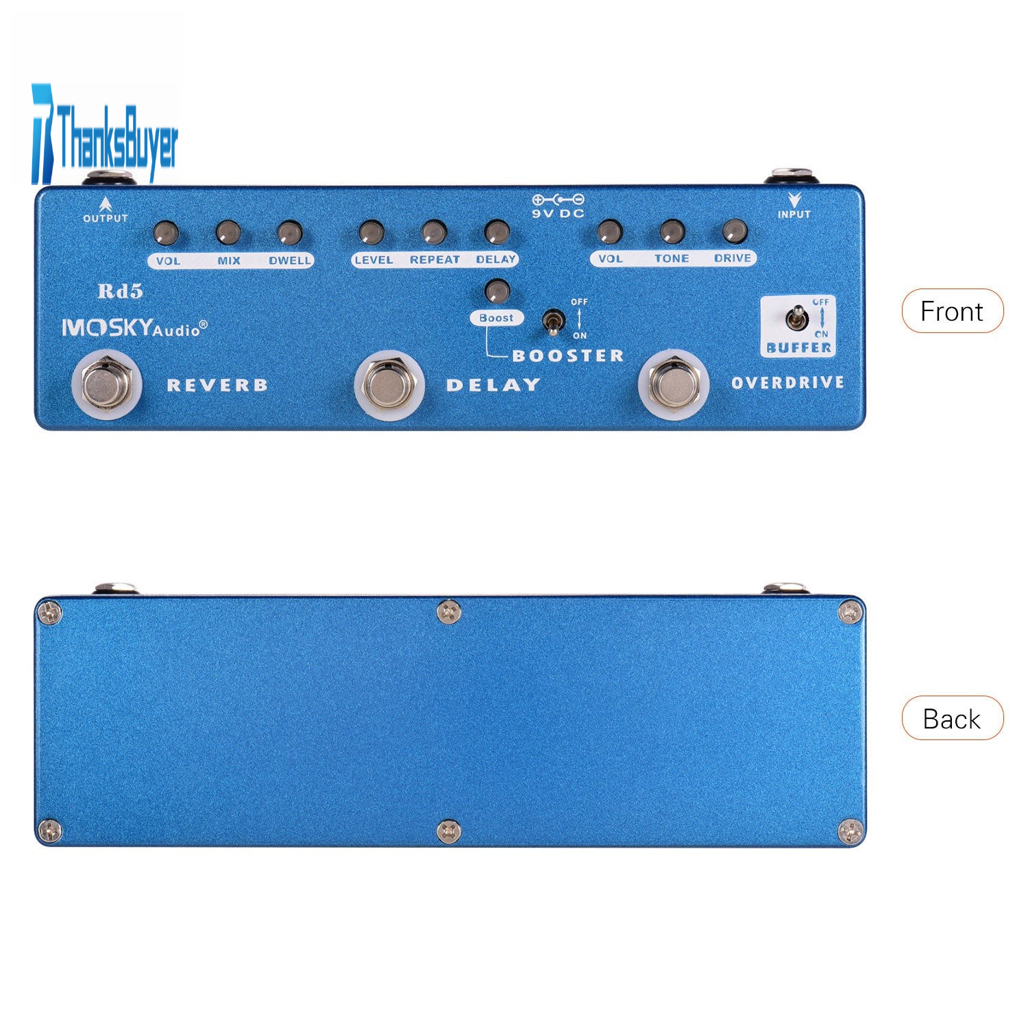 MOSKYAudio RD5 5-IN-1 Multi-effects Pedal Buffer/Overdrive/Boost/Delay/Reverb Guitar Effects Pedal