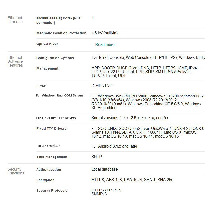 - Support TCP Server, TCP Client, UDP, and Real COM mode