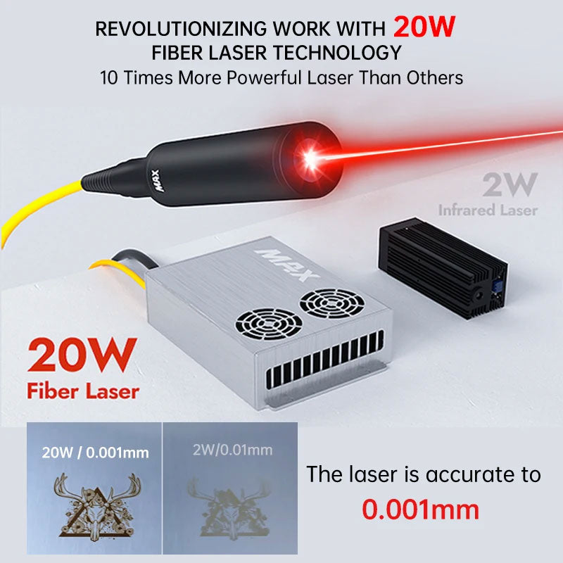 - Built-in Computer & Cellphone Smart APP: Portable and independent operation, while supporting cellphone systems for iOS and Android. You can always carry 20w high power marking machine for creation and entrepreneurship.
