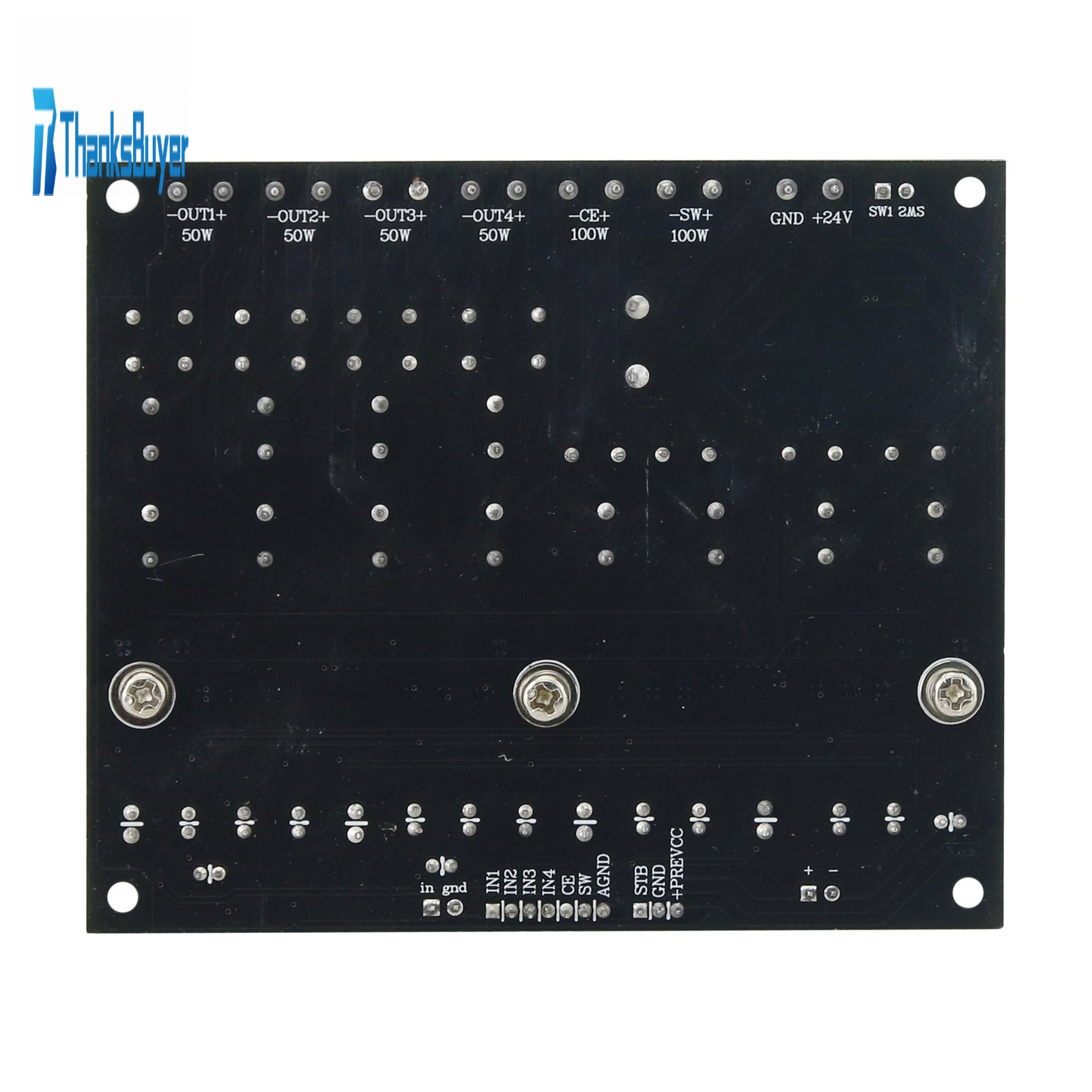 6. Controlled STB standby, 0V standby mute, open-circuit power amplifier module works. Energy saving, no heat generation. Input signal: Input signal 1.4V, suitable for computer sound card, decoder, DVD. Output power: Maximum 50W*4 (main box and surround), maximum 100W*2 (center and bass). Note that the high-voltage input and output power cannot exceed the maximum value. The +24V input temperature rise is relatively high, so pay attention to ventilation and heat dissipation