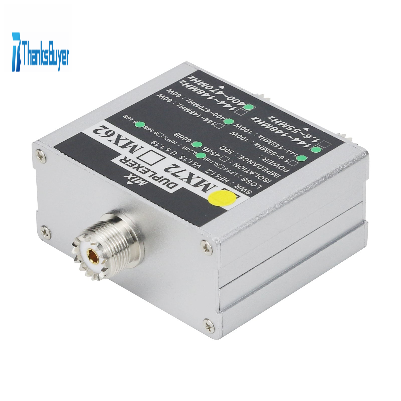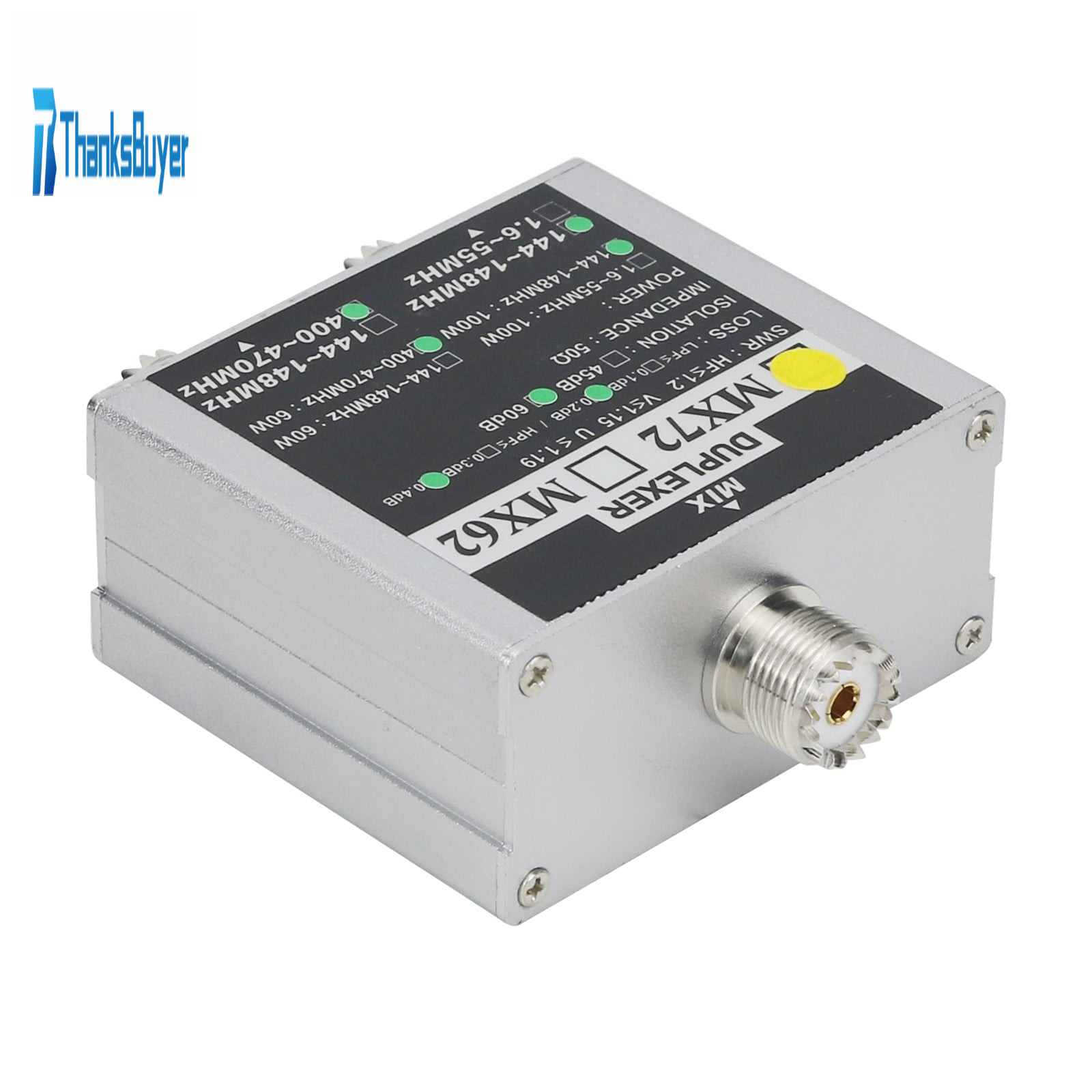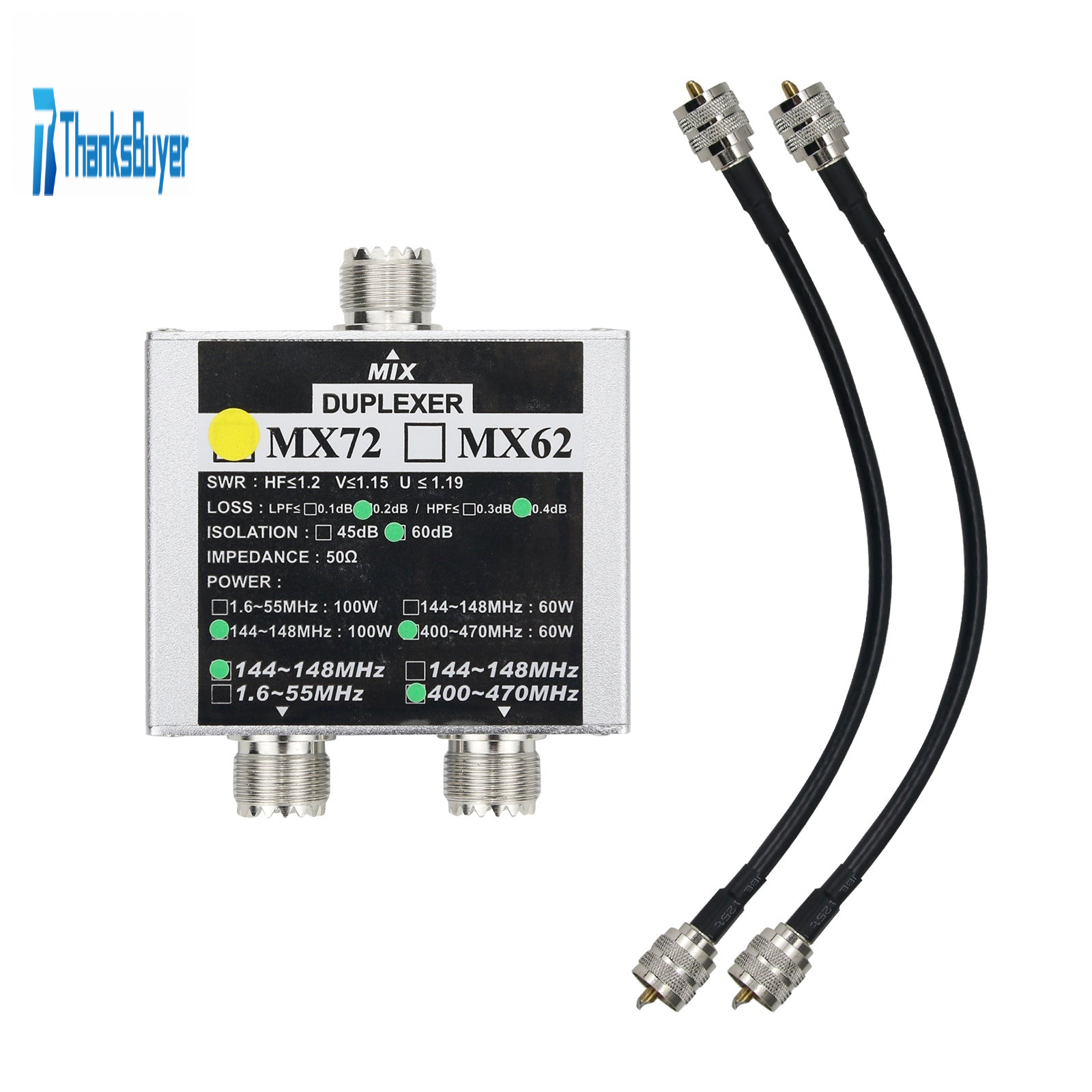 - Insertion loss: 144~148MHz: ≤0.2dB; 400~470MHz: ≤0.4dB
