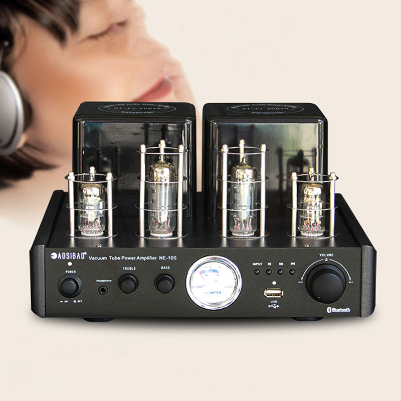 NE10S Vacuum Tube Power Amplifier Bluetooth Tube Amp Headphone Amplifier 40W + 40W With VU Meter