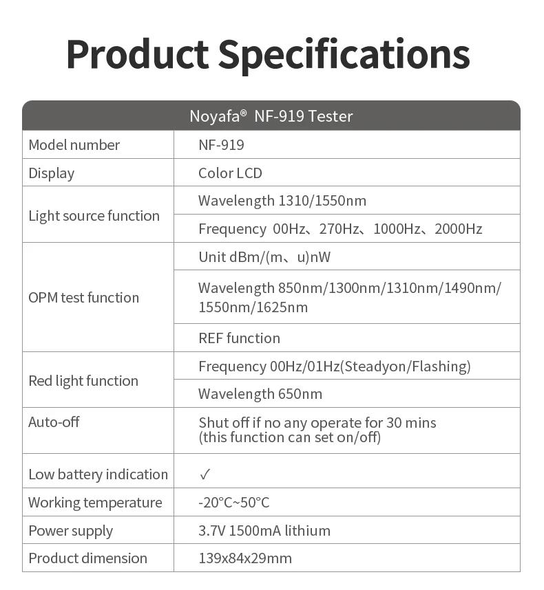 NF-919 Multifunctional Optical Fiber Tester 1310/1550nm Optical Power/Source Light/VFL 3-IN-1 Tester