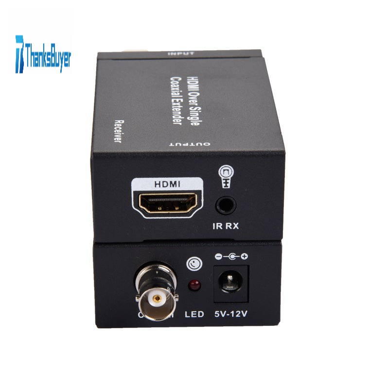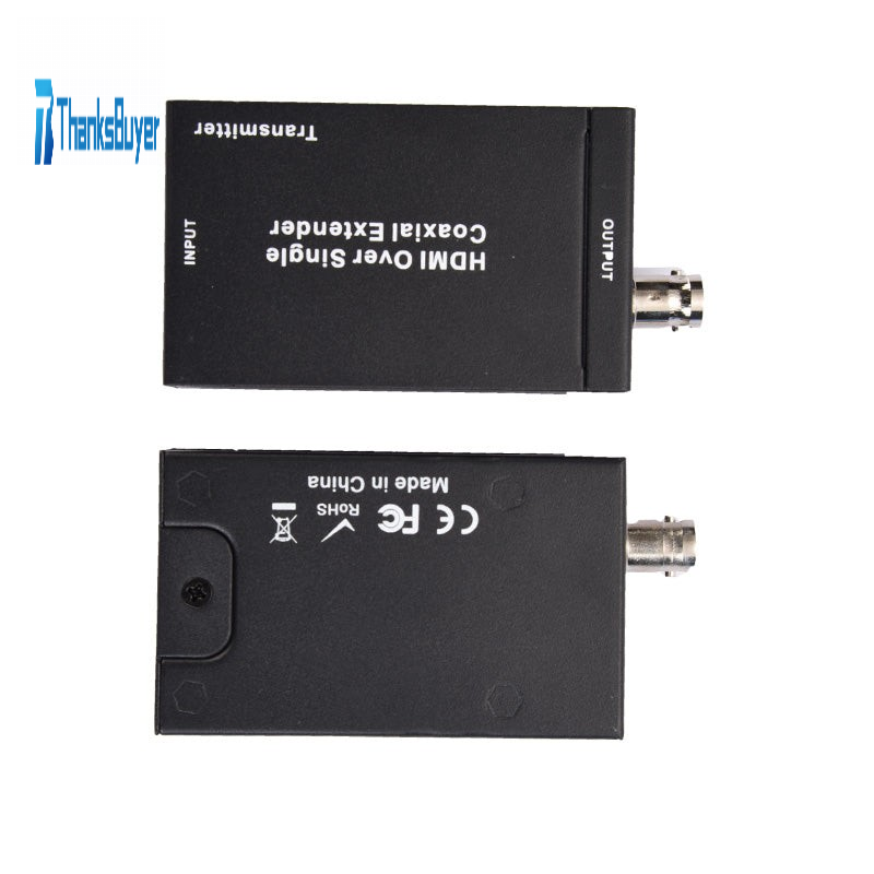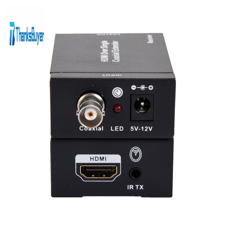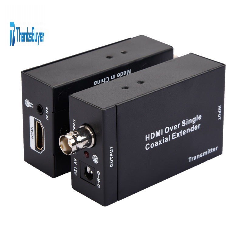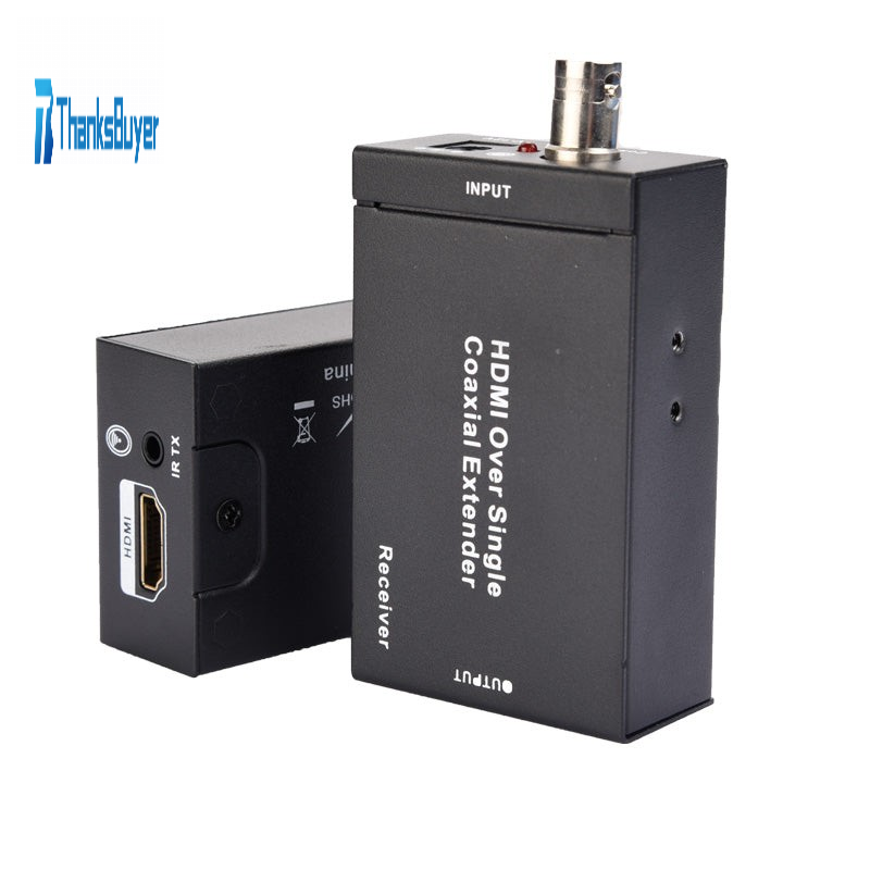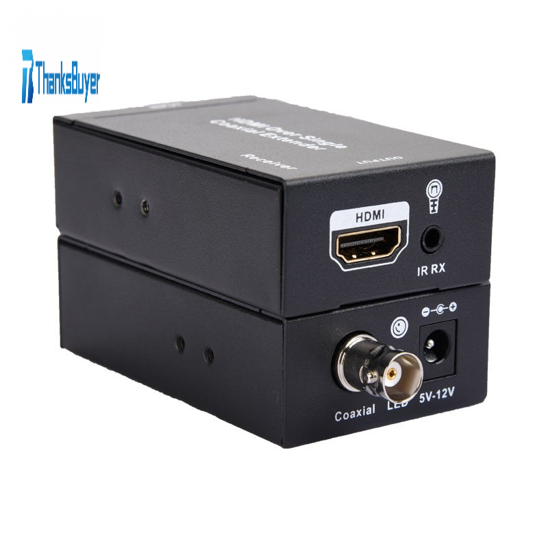 The HDMI Over Single Coax Extender sends HDMI signals Over just one 75Ohm Coaxial cable -- up to 100m away. The HDMI Over Single Coax Extender supports HDMI 1.3 and HDCP 1.1 with features such as Deep Color and 1080p. By using standard and widely available 75Ohm RG-6U cables, the HDMI Over Single Coax Extender makes HDMI signal extensions to be easier than heavy and expensive copper cable and more robust than optical fiber. The Extender includes two units: transmitter and receiver. The transmitting unit is used to capture the HDMI input with IR signals and carries the signals via one coaxial cable. The receiving unit is responsible for equalizing the transmitted HDMI signal and reconstructing IR and serial control signals. The Extender offers the most convenient solution for HDMI extension over a single coaxial cable with long distance capability, and is the perfect solution for any application.