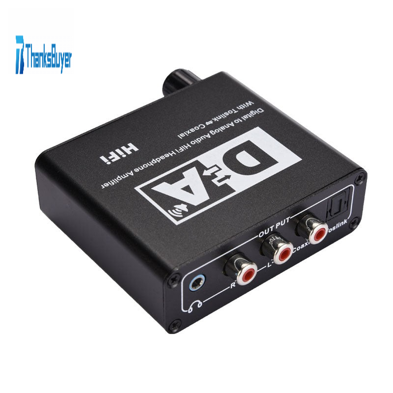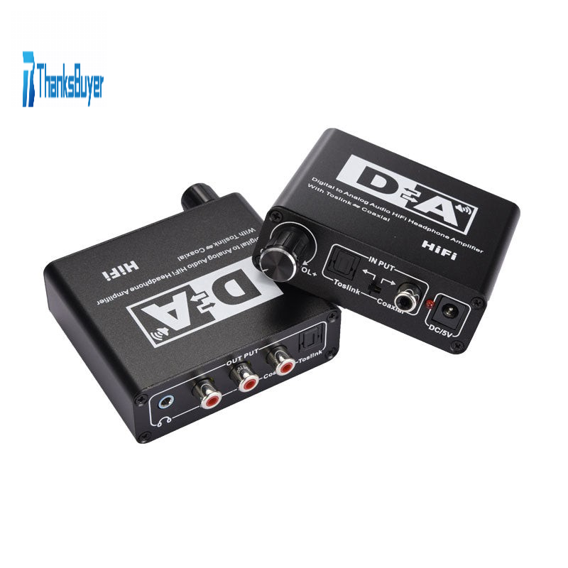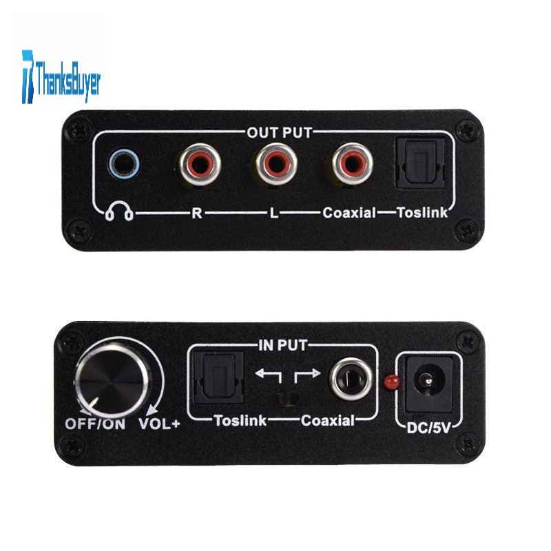This DAC is specially designed for home or professional audio switching. It converts coaxial or digital audio signals for Toslink into analog L/R audio, and can be connected to external devices such as amplifiers through standard RCA-type jacks. It can also output by 3.5mm headphone jack, connect to high-fidelity headphones, the converter is small and easy to install, built-in high-fidelity amplifier chip, headphones and RCA output port can easily launch 16-300 ohm high-fidelity headphones. The product supports power off, volume adjustment, easier to adapt to different sources, different environments. The product also supports for Toslink input to Toslink, coaxial output, coaxial input to for Toslink, coaxial output, can adapt to more digital audio amplifier interfaces.