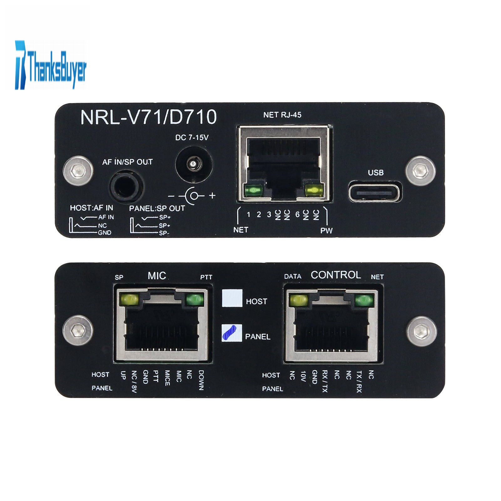 NRL-V71/D710 is specially designed for KENWOOD V71 and D710. Through the network, NRL-V71/D710 can be connected to the host and the panel of your transceiver.