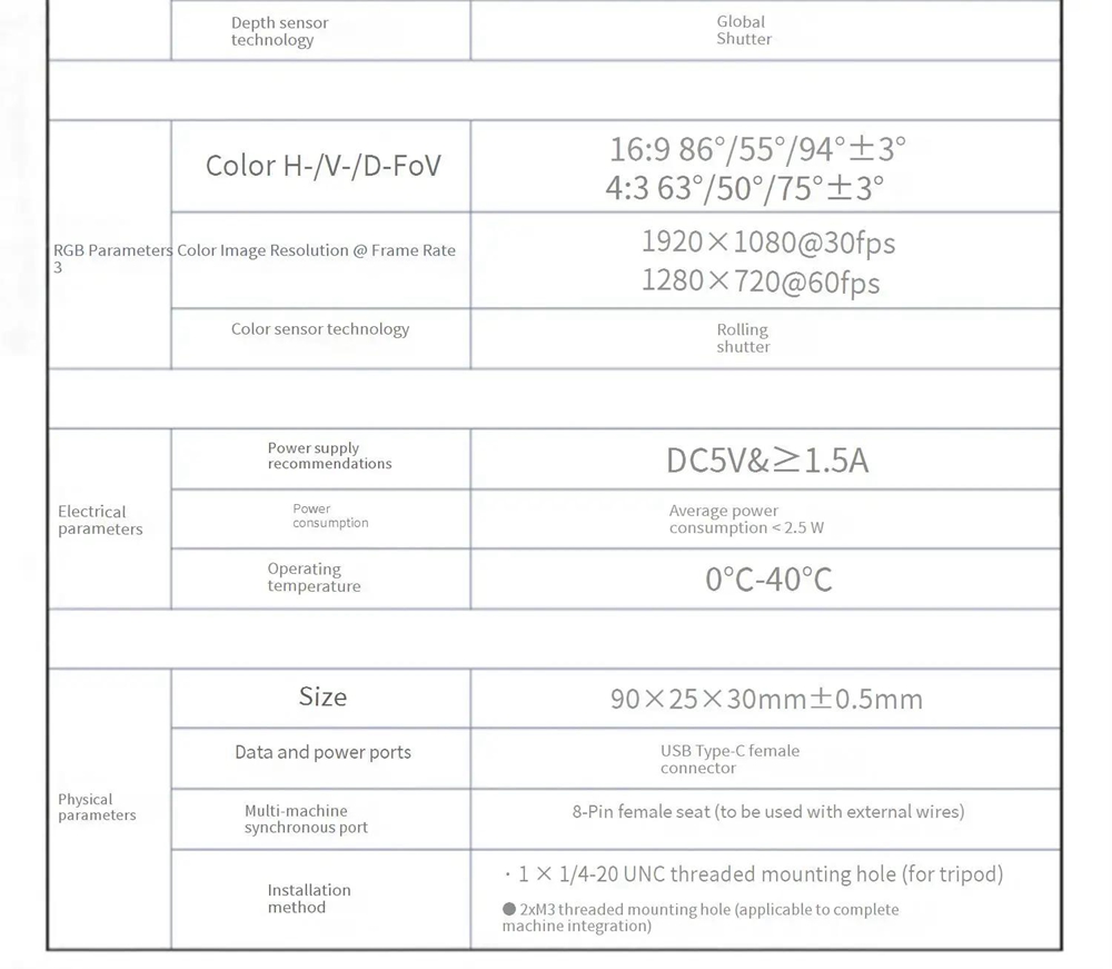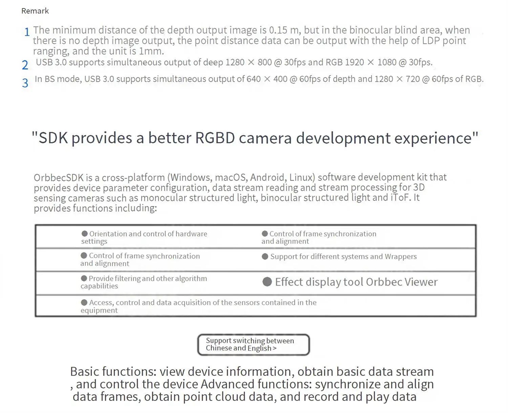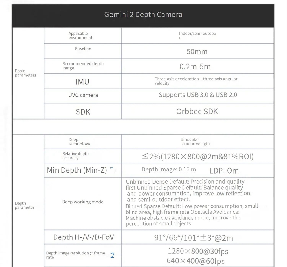 ORBBEC Gemini 2 0.2-5m 3D Binocular Structured Light Depth Camera Rolling Shutter RGB for Indoor/Semi-outdoor