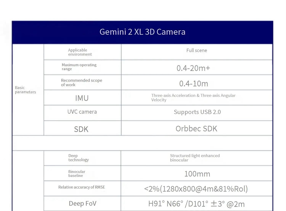 ORBBEC Gemini 2 XL POE Version 0.4-10m Binocular Structured Light Global Shutter RGB Long Distance 3D Camera