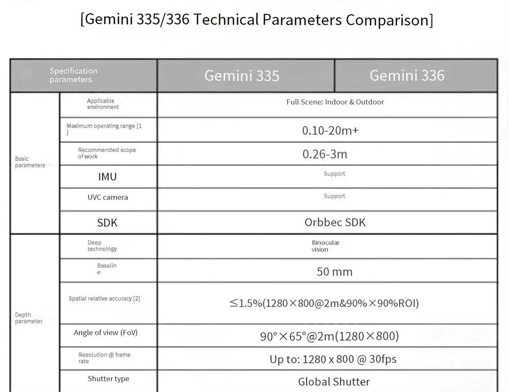 ORBBEC Gemini 336 0.26-3m Full Scene Binocular Structured Light Global Shutter 3D Camera IR Imaging Depth Camera