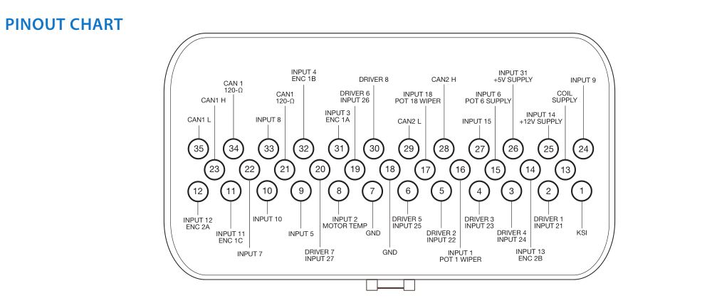 ▶ Sealed, 35-pin AMPSEAL I/O connector.