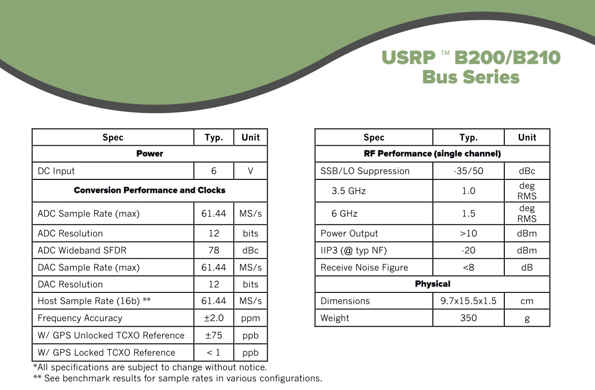* 1 x USRP B210 SDR (Board Only)