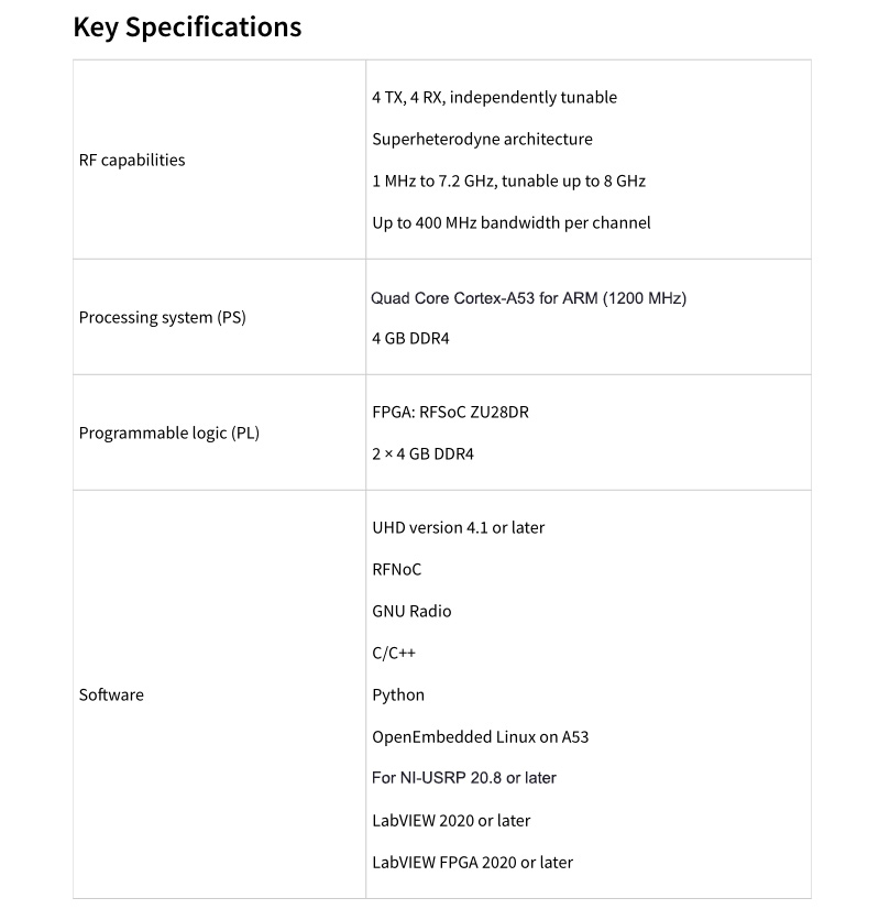 * Fully integrated and assembled (the USRP X410 does not support swappable daughtercards)