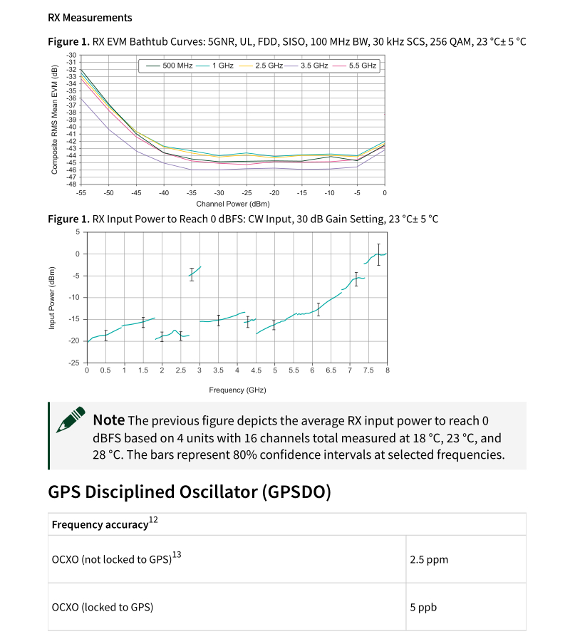 Multi-radio clocking and timing synchronized operation is possible with the built-in GPSDO (GPS disciplined oscillator) or with the 10 MHz reference and 1 PPS (Pulse Per Second) input signal interfaces. Multi-Radio phase-aligned and phase-coherent operations are not supported, as RF chain LO import and export functionality is not supported on the USRP X410.