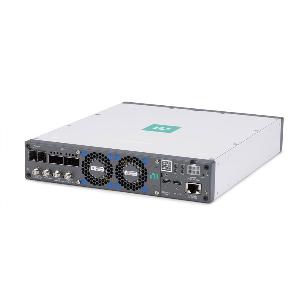 The USRP X410 is a high-performance, multi-channel software-defined radio. The SDR is designed for frequencies from 1 MHz to 7.2 GHz, tunable up to 8 GHz and features a two-stage superheterodyne architecture with 4 independent TX and RX channels capable of 400 MHz of instantaneous bandwidth each. Digital interfaces for data offload and control include two QSFP28 interfaces capable of 100 GbE, a PCIe Gen3 x8 [1] interface, as well standard command, control, and debug interfaces: USB-C JTAG, USB-C console, Ethernet 10/100/1000. The USRP X410 is an all-in-one device built on the Zynq Ultrascale + ZU28DR RF System on Chip (RFSoC) with built-in digital up and down conversion and onboard Soft-Decision Forward Error Correction (SD-FEC) IP.