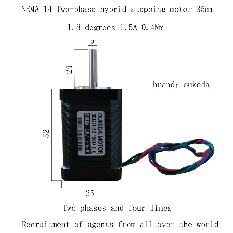 OUKEA Motor Stepper Motor OK35STH52-1504A NEMA14 Phase Current 1.5A 0.4Nm Stepping Motor 35BYG52