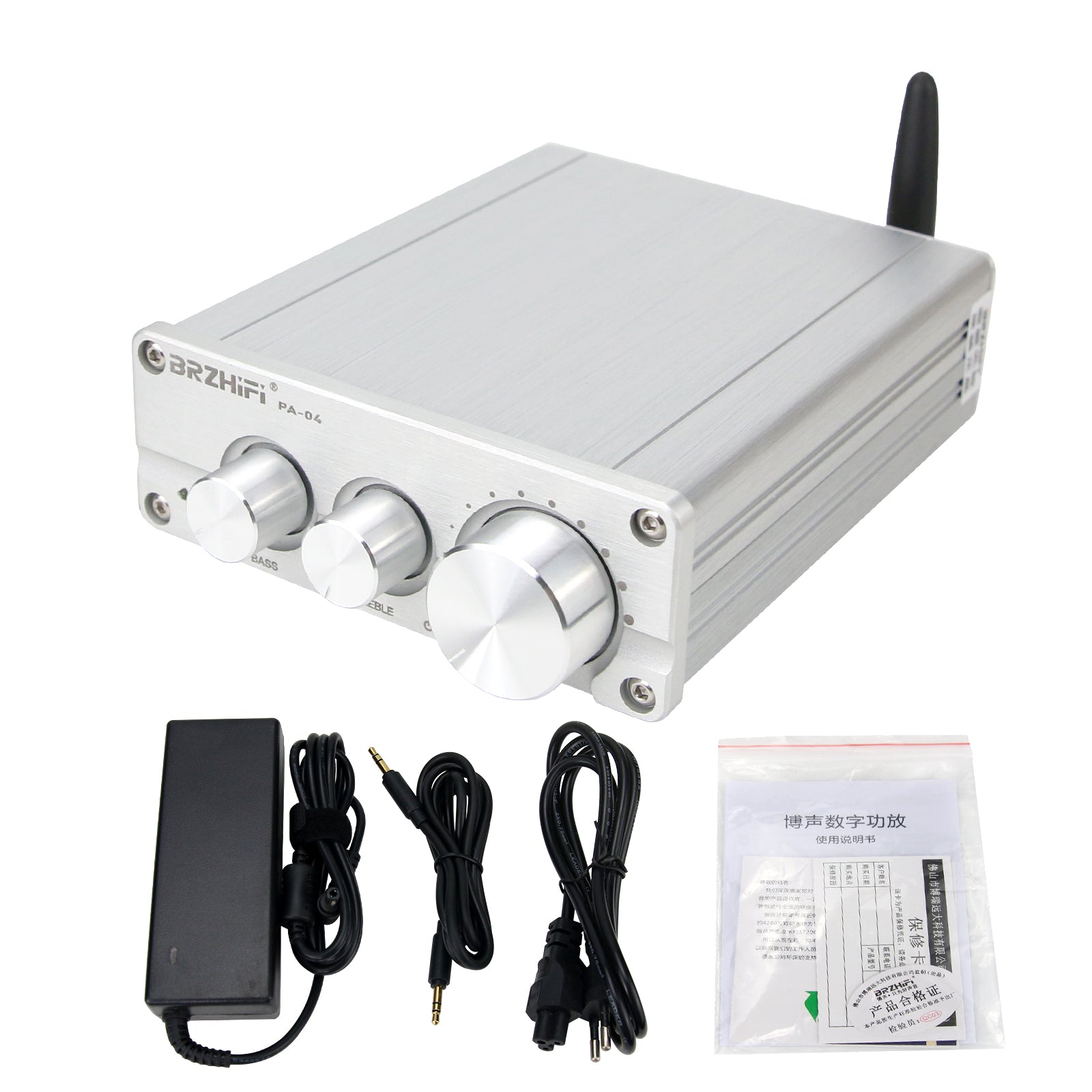 PA-04 200W 2.1 Channel Amplifier Bluetooth Mini Stereo HiFi Amp Assembled Silver + Power Adapter