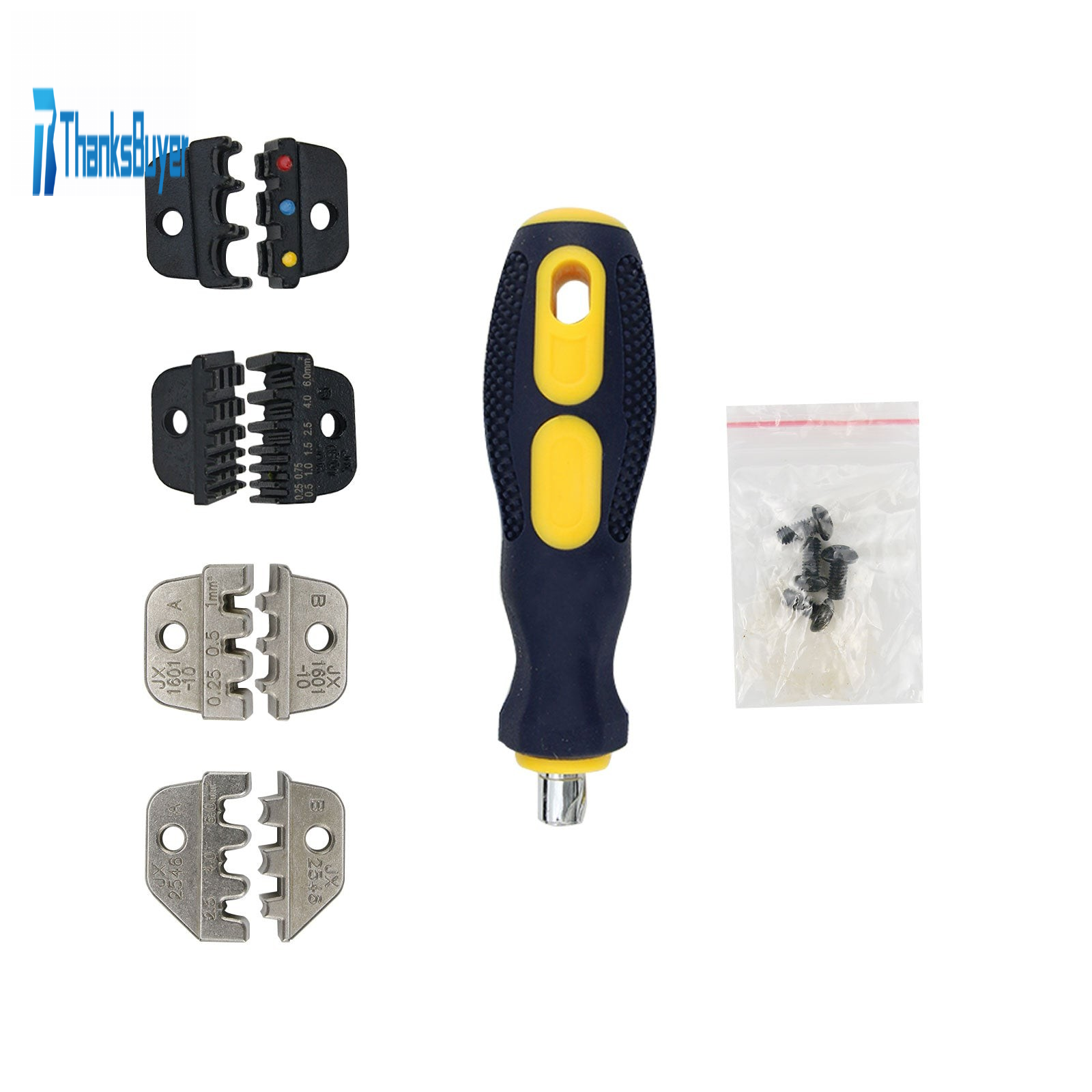 The 5 in 1 crimping tool set is made of imported manganese steel, with high durability, long service life and easy to use. The clamp head is made by high-precision powder metallurgy, featuring high accuracy. The clamp head die can be replaced quickly and easily, and can be used to crimp terminals of various specifications and models.