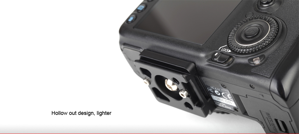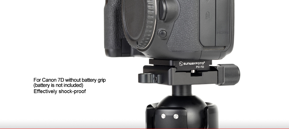 PC-7D Custom plate for Canon 7D body, one piece CNC cutting machined from light weight aircraft-grade aluminum, stain anodized surface finish for better abrasion and corrosion resistant. For Arca-Swiss style.