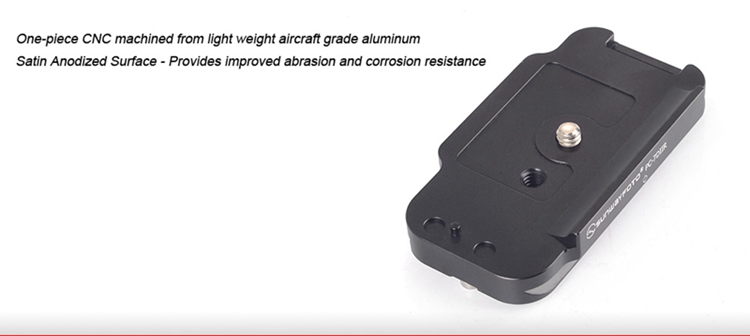 PC-7DIIR Custom plate for Canon 7DII body, one piece CNC cutting machined from light weight aircraft-grade aluminum, stain anodized surface finish for better abrasion and corrosion resistant. For Arca-Swiss style.